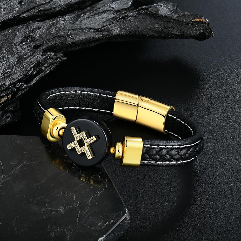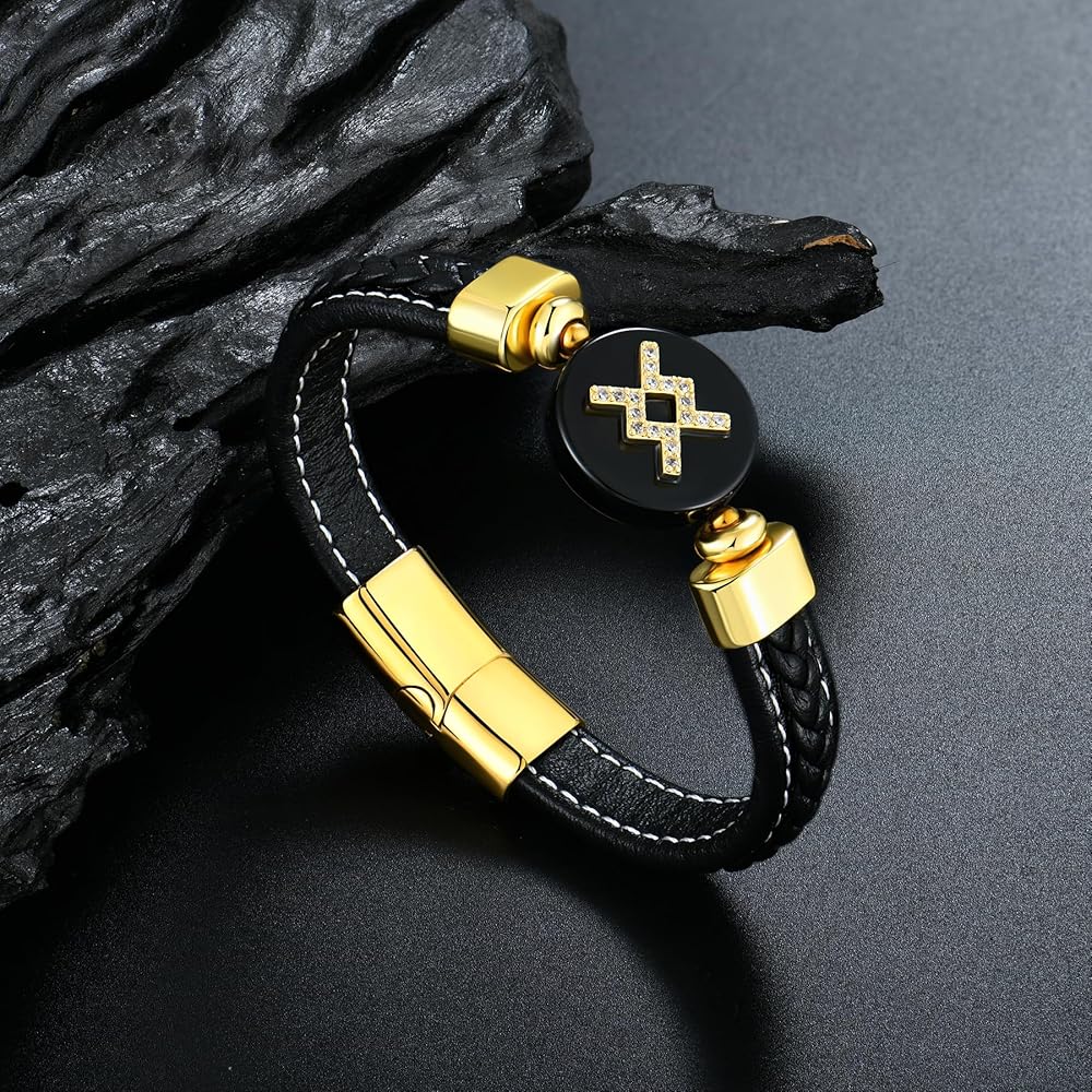 اللون والمواد: جلد أسود وستانلس ستيل ذهبي، زركونيا مكعب 3A