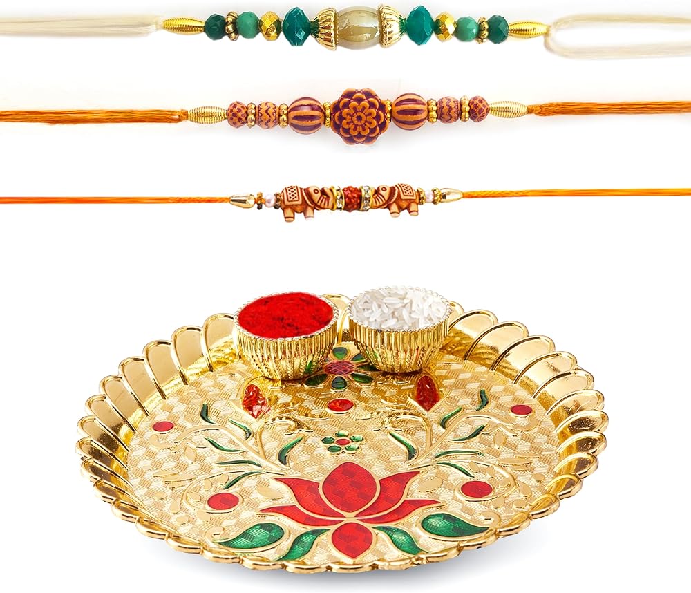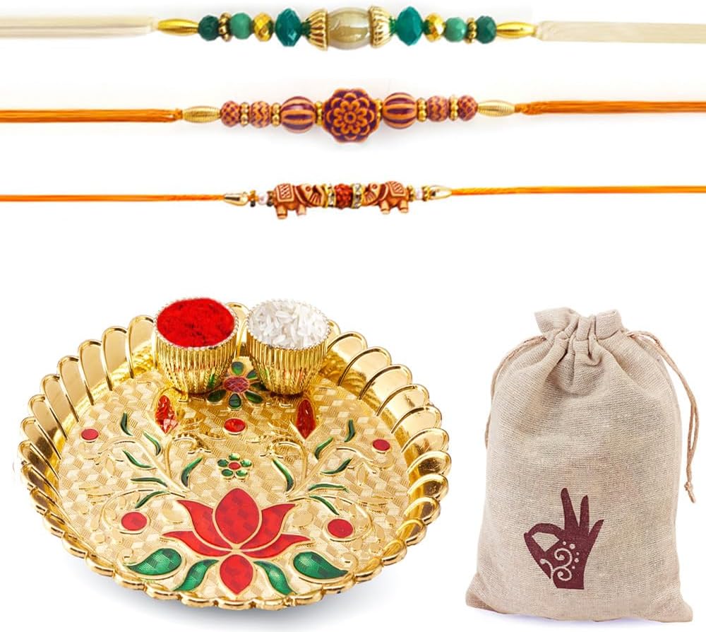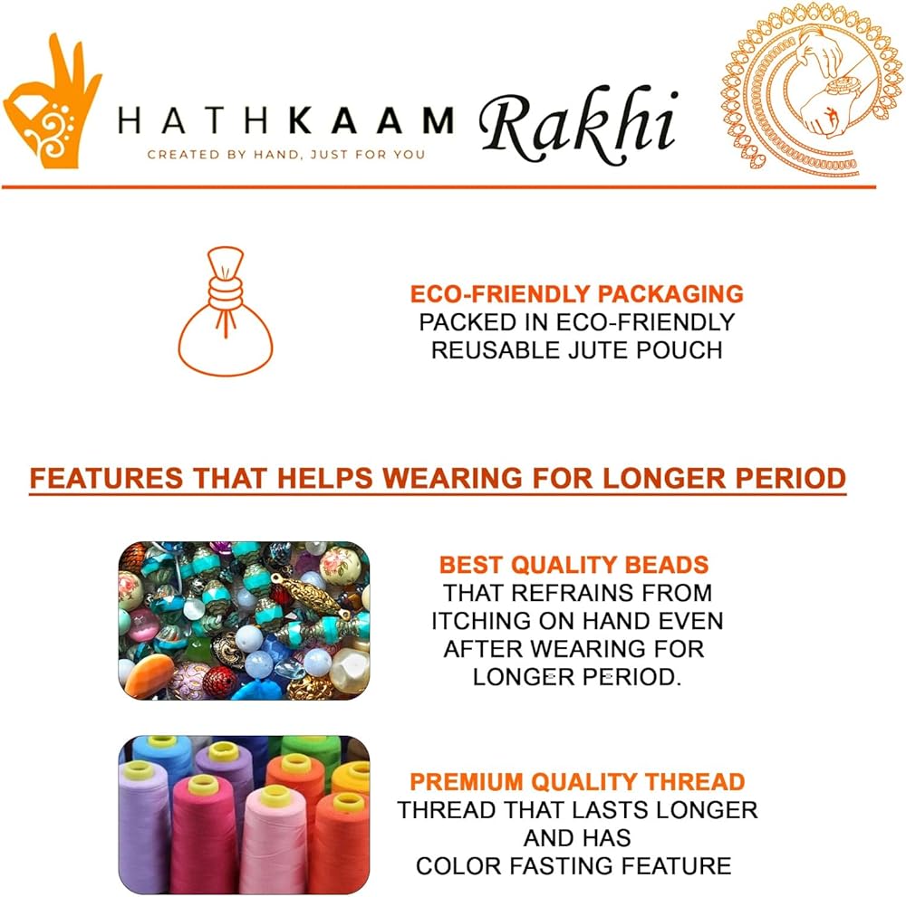 HATHKAAM مجموعة راخي 5 قطع للأخ وبهابي، مجموعة أساور راخي 3 قطع مصنوعة يدويًا من قبل النساء الحرفيين الذين يحبون من الأخت مجموعة أطباق راخي المزخرفة مع اثنين من خرز راخي فاتيس راخدي راخي