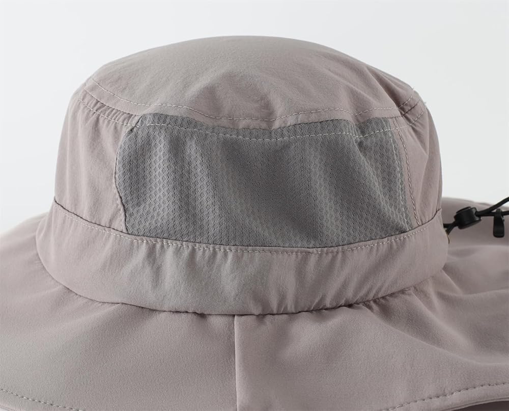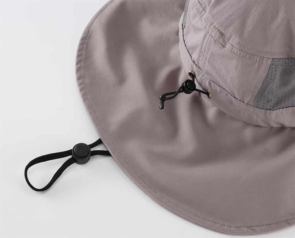 Connectyle mens neck flap sun hat is made of nylon fabric, cool and comfortable. And it is 50+ UPF for complete UV ray protection of your face, ears, and neck. One size fits most adult head sizes between 21.7"-23.3"/55-59 CM. The chin strap holds hat in place on windy days, elastic drawcord with toggle at back for adjustability. The hat features large ventilation meshes on both sides, effectively promoting airflow and heat dissipation. This ensures that our heads remain breathable and dry even during outdoor activities. The hat features 2.95" wide brim that effectively covers our face and neck, providing effective protection against UV rays. The 4.7" short neck flap can not only provide shade for the neck, but also be more ventilated and breathable.