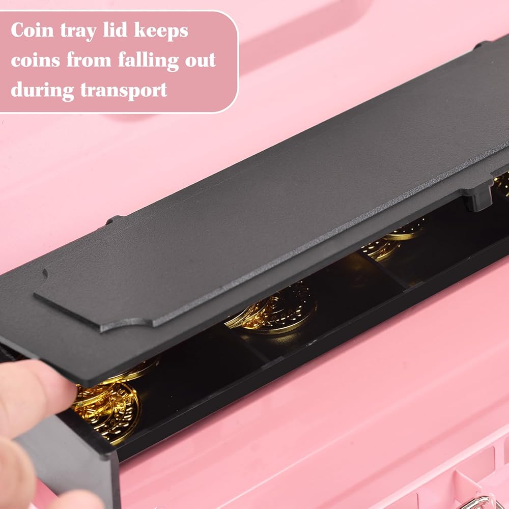 4 مشابك محملة بنابض: تتميز صناديق النقود ذات القفل مع غطاء صينية العملات المعدنية بمشابك محملة بنابض في صواني الفواتير لمنع اختلاط الفواتير والإيصالات من السقوط أو النفخ، وستكون مثالية للاستخدام حتى في البيئة الخارجية العاصفة.