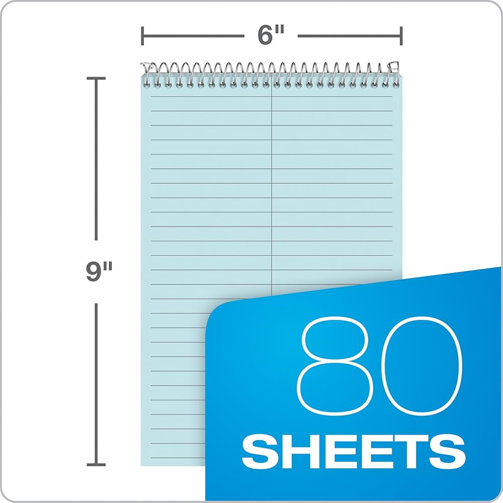 Ampad Steno Books are ideal for everyday use at home, school or office. The classic flip-top format long preferred by stenographers and reporters gives quick access to notes and lists. The 6" x 9" size tucks easily into any backpack or bag. A no-snag coil resists catching on papers or clothing. Perforated sheets detach easily. Proudly made in the USA. Blue paper and cover. Gregg ruled, 80 sheets. 12 Pack.
