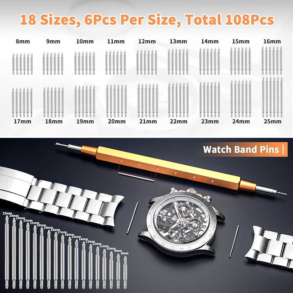 • مجموعة ساعات BYNIIUR تناسب الساعات ذات الحجم المتوسط ​​والساعات كبيرة الحجم. سهل الاستخدام لإزالة الروابط الموجودة في حزام الساعة باتباع التعليمات المرفقة خطوة بخطوة. جيد للإصلاحات الصغيرة على ساعتك وألعابك الإلكترونية والمجوهرات والنظارات.