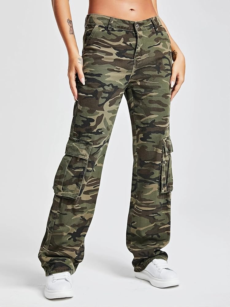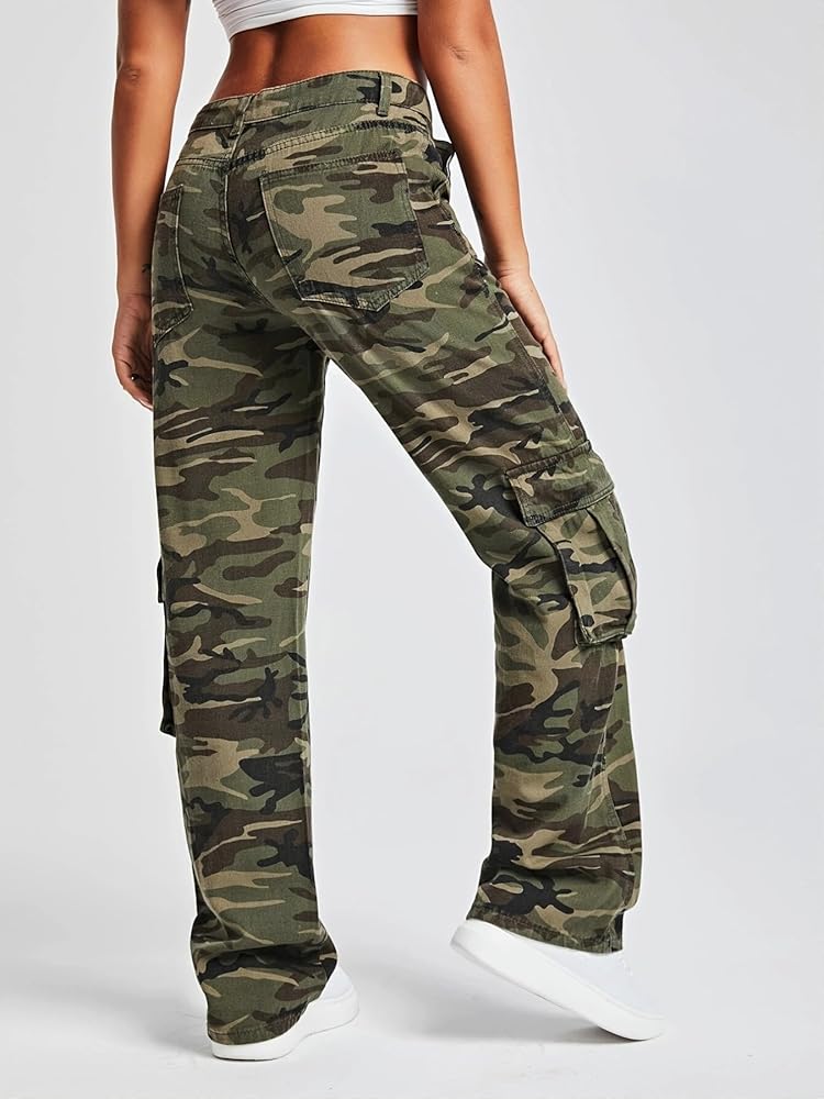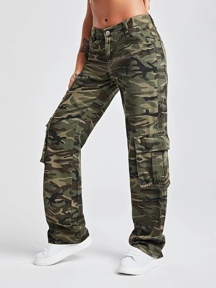 • سراويل كارجو مموهة للنساء مصنوعة من نسيج مزيج القطن، صديقة للبشرة، مقاومة للاهتراء، مريحة ومسامية للارتداء في جميع المواسم