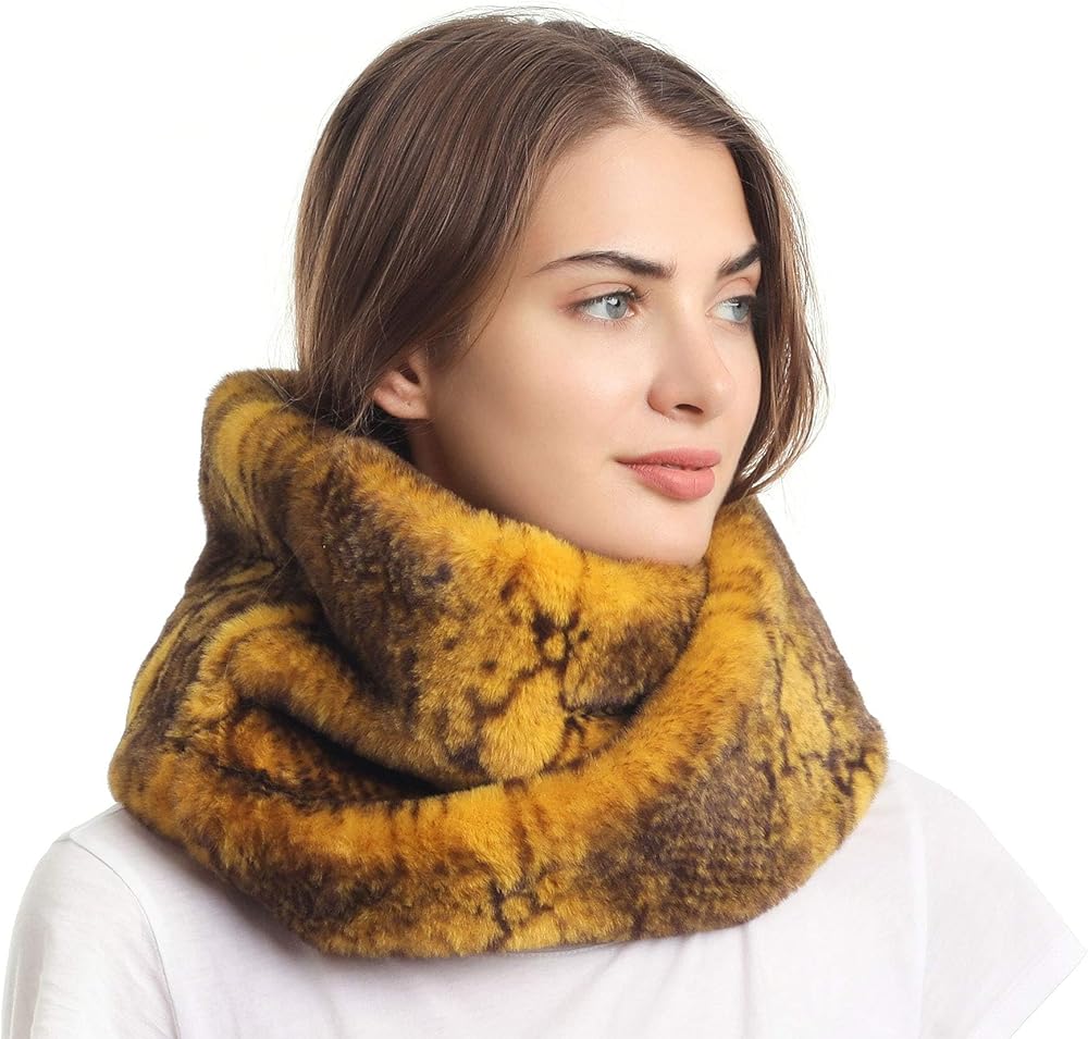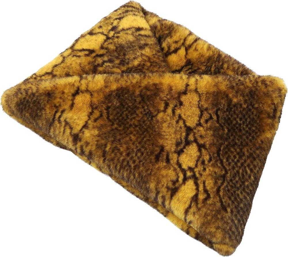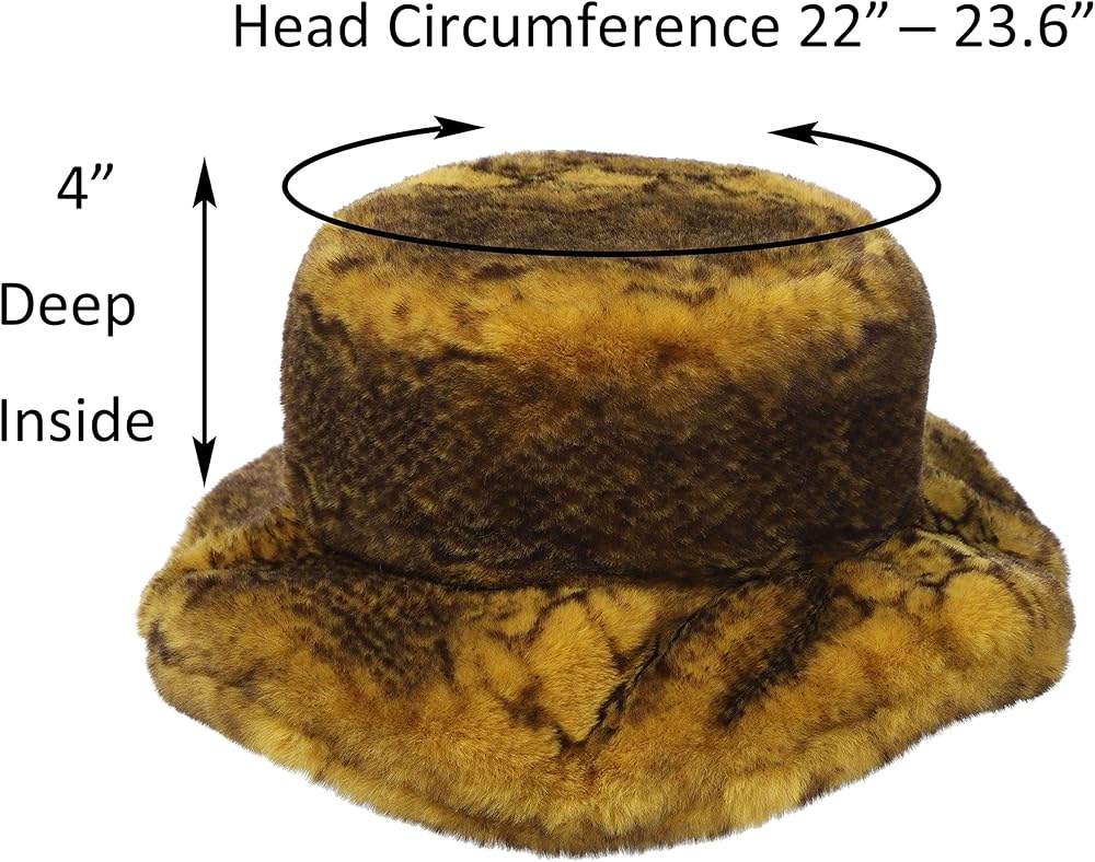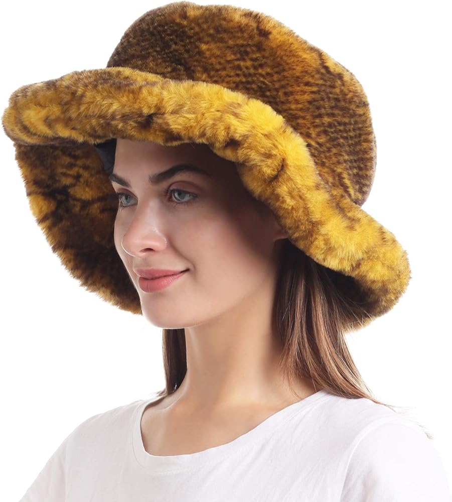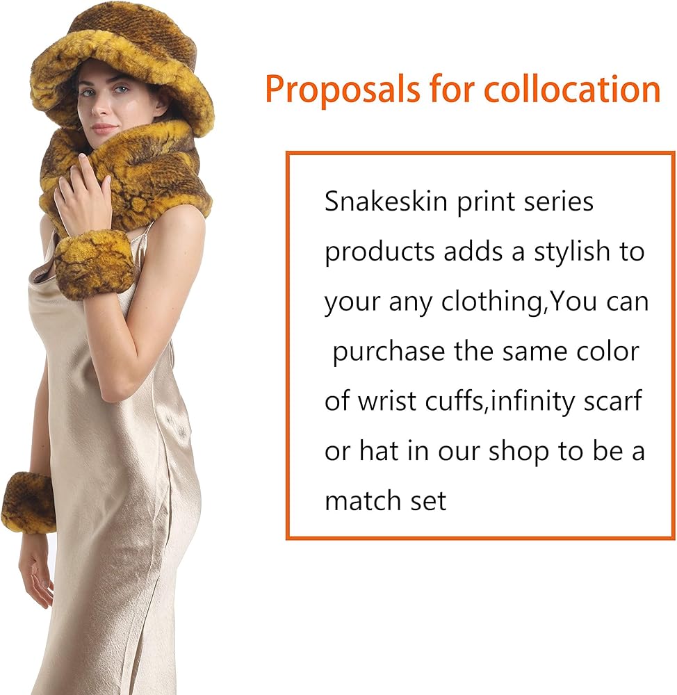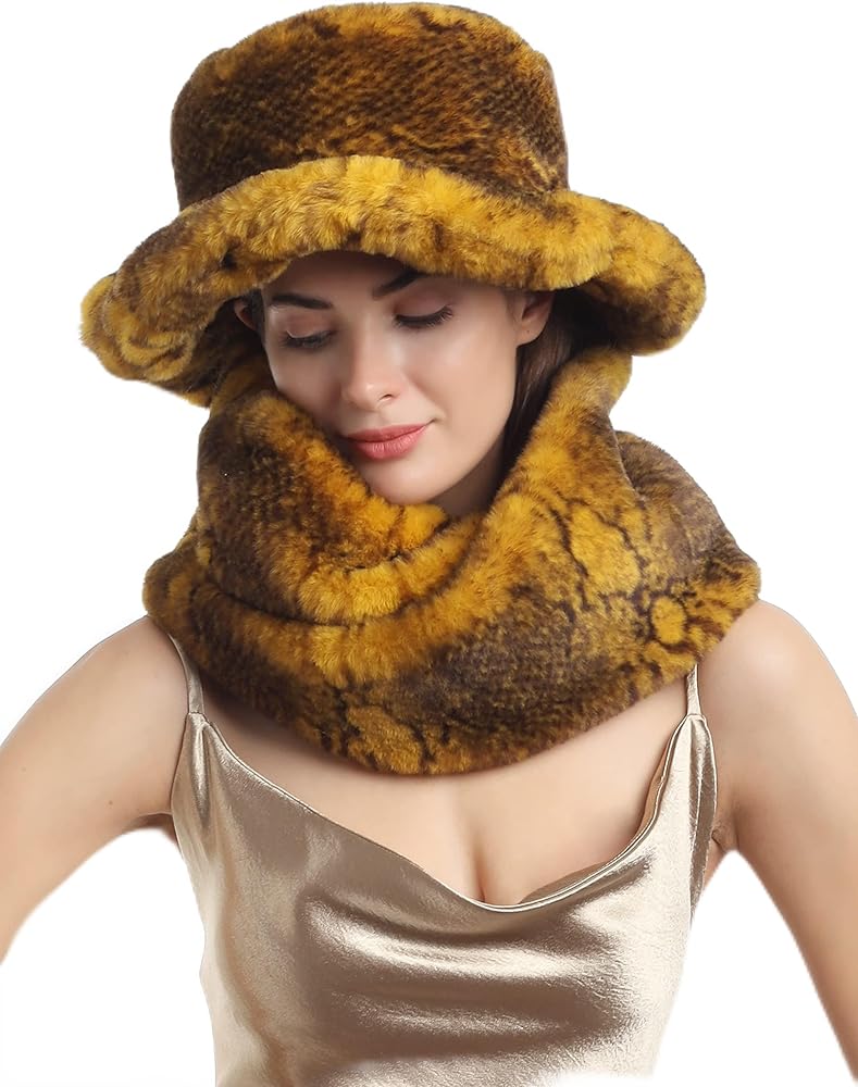 مجموعة قبعة ووشاح دلو من الفرو الصناعي من جلد الثعبان للسيدات من LA CARRIE مكونة من قطعتين باللون الأصفر للشتاء الدافئ