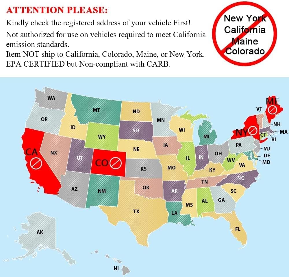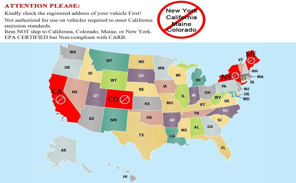 【ملاحظة】 للاستخدام مع نماذج الانبعاثات الفيدرالية؛ غير قانوني للبيع أو الاستخدام في نماذج الانبعاثات في كاليفورنيا أو نيويورك أو ماين. إذا كانت سيارتك مسجلة في كاليفورنيا أو نيويورك أو ماين فلا تشتري هذا المنتج.