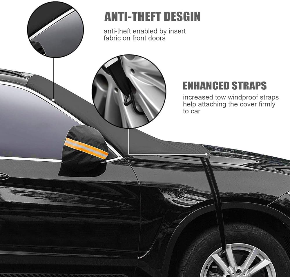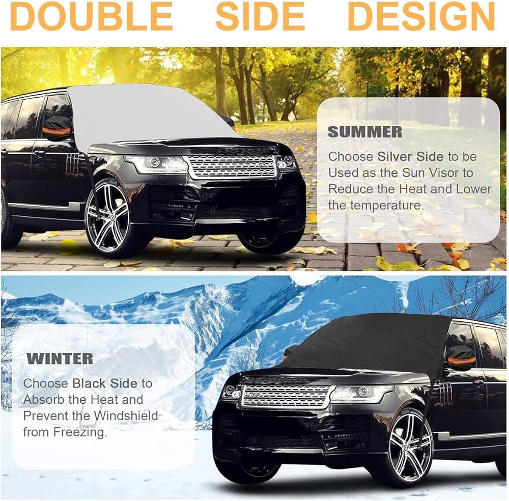 【مادة عالية الجودة】غطاء الثلج للزجاج الأمامي هذا مصنوع من مادة متينة 210T (بوليستر) مع وظائف العزل الحراري والمدة ومقاومة قوة الشد والخدش.