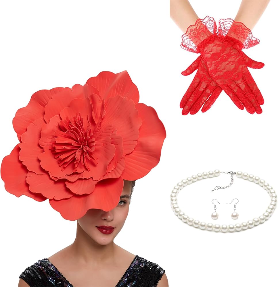 محتوى العبوة: سوف تحصل على قبعة كبيرة رائعة على شكل زهرة مع عصابة رأس ومشبك شعر، وقلادة واحدة من اللؤلؤ الأبيض المقلد، وزوج واحد من قفازات الدانتيل، وزوج واحد من أقراط اللؤلؤ، يمكن أن يلبي المزيج احتياجاتك اليومية والحفلات، هذه الإكسسوارات الأنيقة إبراز اللمسة الأنثوية النهائية.