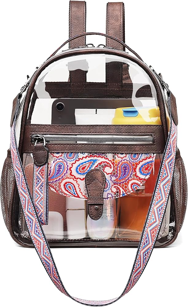 طرق متعددة للحمل: تأتي حقيبة الظهر الشفافة اللطيفة هذه مع حزام كتف قصير ملون (28 بوصة)، الحجم المناسب تمامًا مع أحزمة كتف قصيرة لتحويل حقيبة الظهر للسفر إلى حقيبة كتف أو حقيبة يد للاستخدام، وهو مفهوم تصميم أنيق في نفس الوقت. وقابلة للاستخدام، مما يجعل حقيبة الظهر الصغيرة الشفافة هذه مناسبة لاحتياجات معظم الأشخاص.