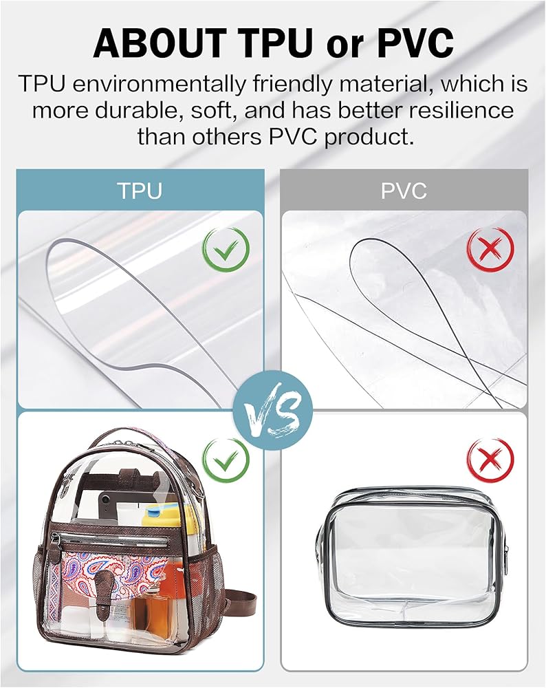 مادة متينة: حقيبة الظهر الصغيرة الشفافة هذه مصنوعة من مادة TPU الصديقة للبيئة، وهي أكثر متانة ونعومة وتتميز بمرونة أفضل من منتجات PVC الأخرى. إنه أيضًا خيار هدية ممتاز لأعياد الميلاد، وعيد الحب، وعيد الأم، وعيد الشكر، والكريسماس، واحتفالات التخرج، والمزيد، بالإضافة إلى هدية لنفسه أو للأصدقاء أو العائلة أو الأحباء.