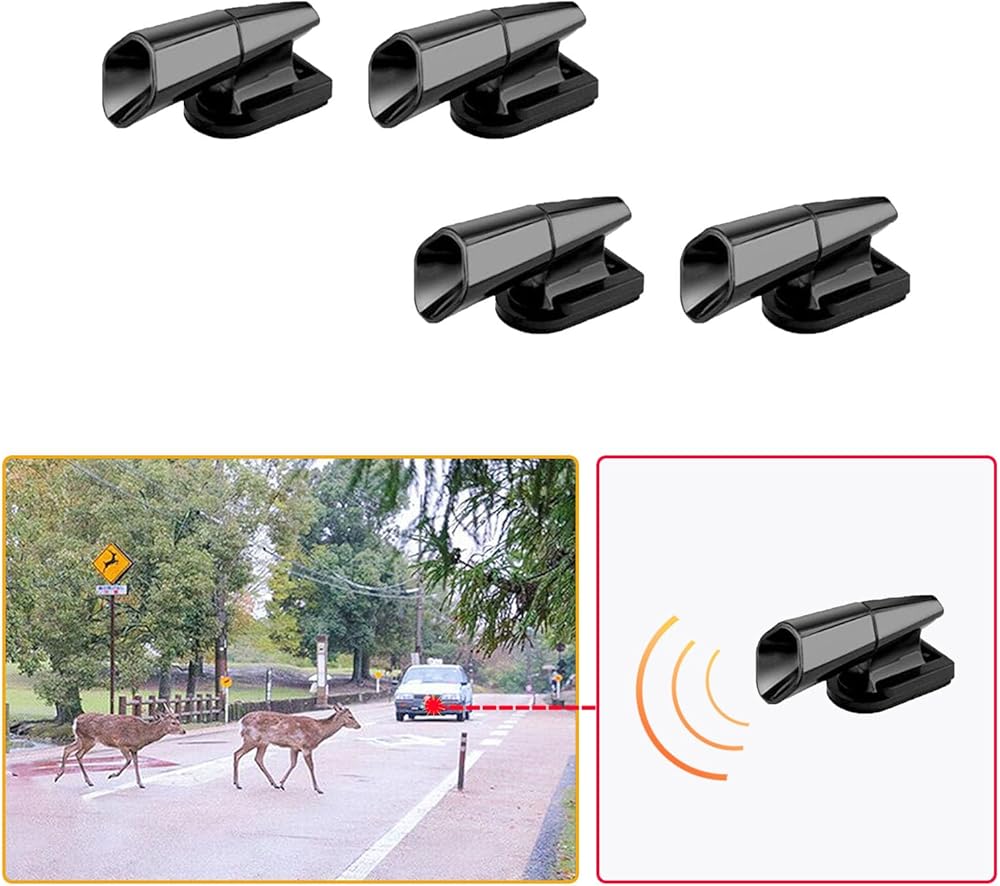 ZKFAR Pack-4 Deer Warning Devices, ABS Animal Alarms, Ultrasonic Deer Whistles Repellers, Automobile Safety Accessories, Universal for Most Cars, SUVs and Vans (Black)