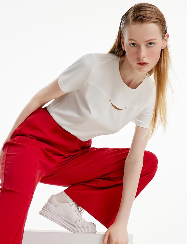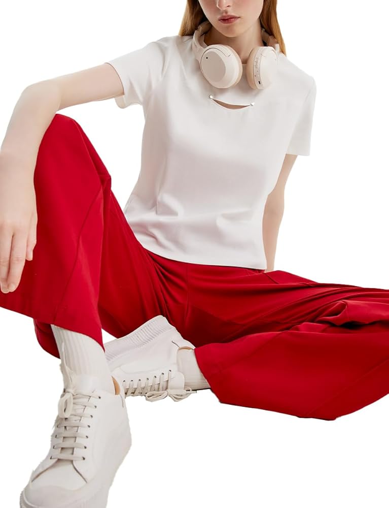 مطابقة - بسيط ولكن أنيق، هذا التي شيرت الأبيض اللطيف والمرح والمريح للسيدات مثالي بمفرده أو كطبقة تحت ملابس أخرى. يمكن أن تتطابق القمصان ذات الأكمام القصيرة بسهولة مع مجموعة متنوعة من المعاطف والسترات والمعاطف الواقية من المطر والسترات والسراويل القصيرة والتنانير والجينز والسراويل والكعب والصنادل والأحذية الرياضية والأحذية طويلة الرقبة. سواء كنت ترتدي ملابس أنيقة أو منخفضة، فإن هذا القميص الأبيض يكمل أي لوحة ألوان ونمط، مما يضمن لك الظهور بأفضل حالاتك دائمًا.