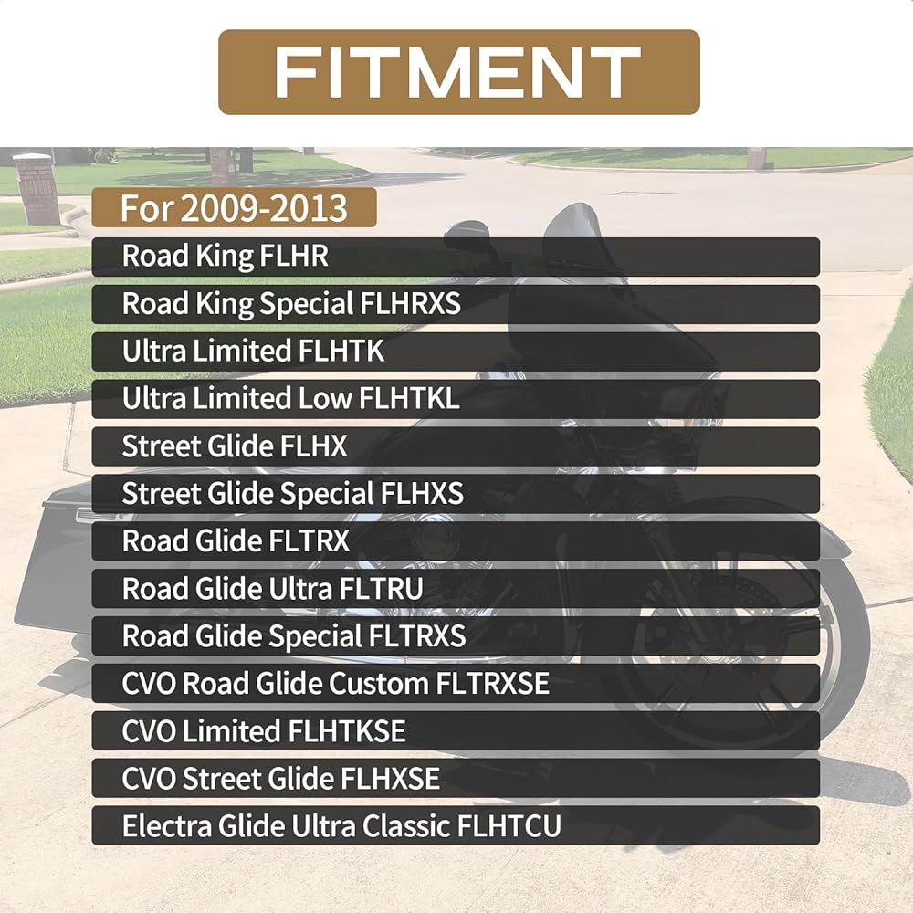 - ►الإعداد - أغطية جانبية ممتدة سوداء زاهية تناسب موديلات Harley Touring 2009-2013، Road King، Road Glide، Street Glide، Electra Glide، Ultra-Classic، FLT، FLHT، FLHTCU، FLHRC.
