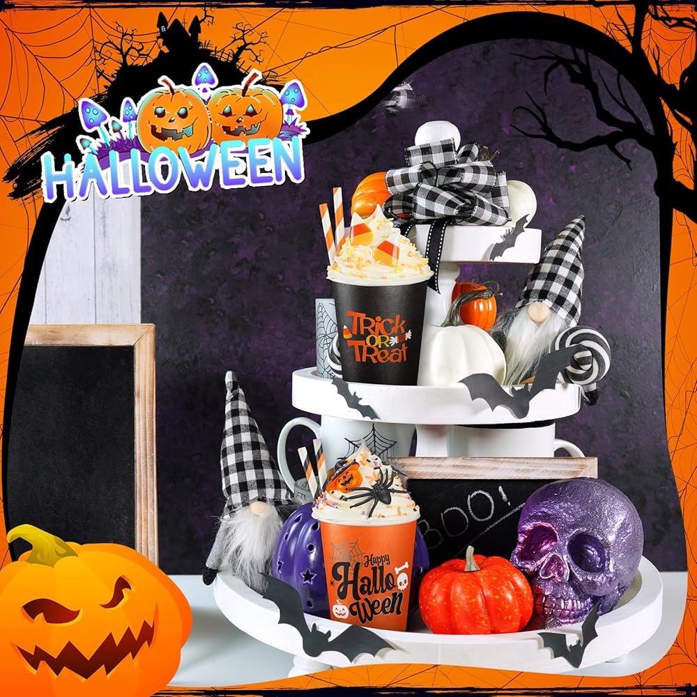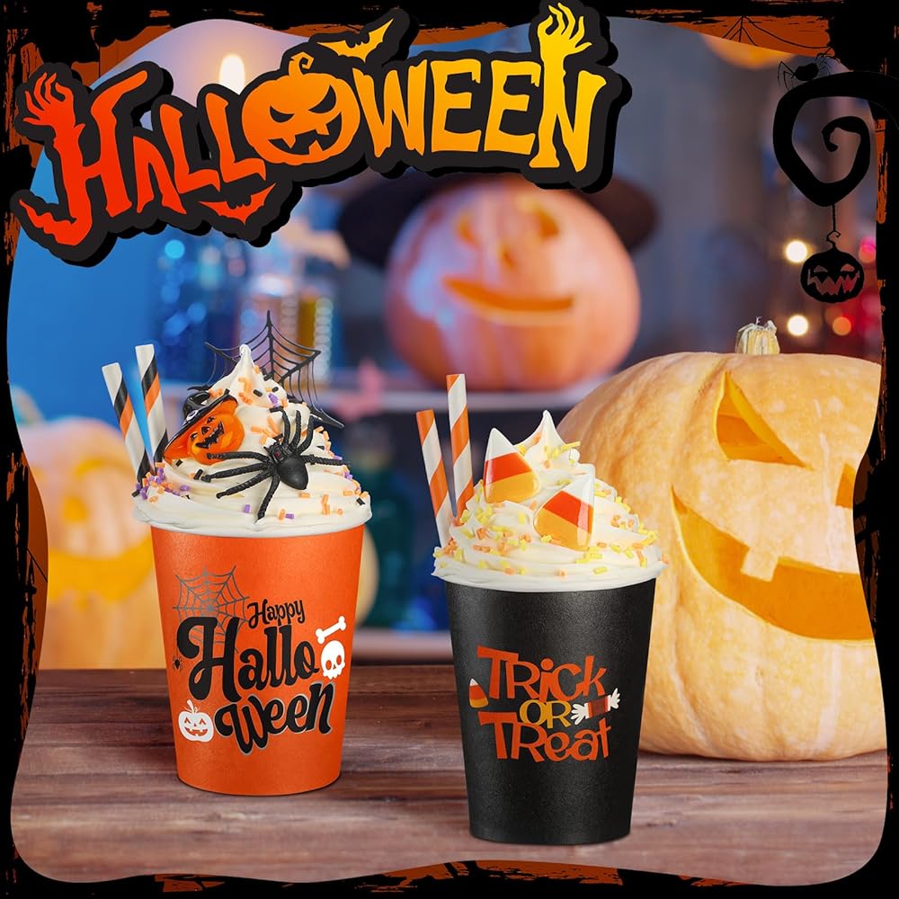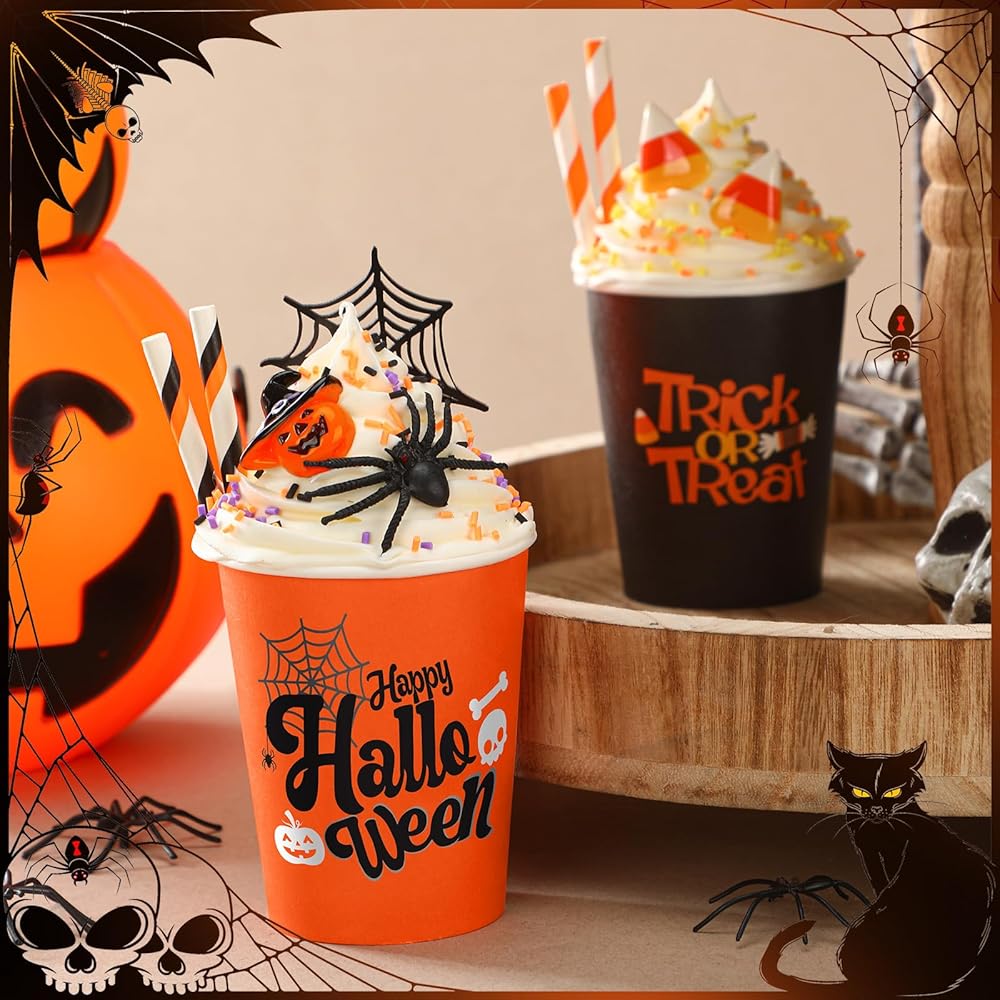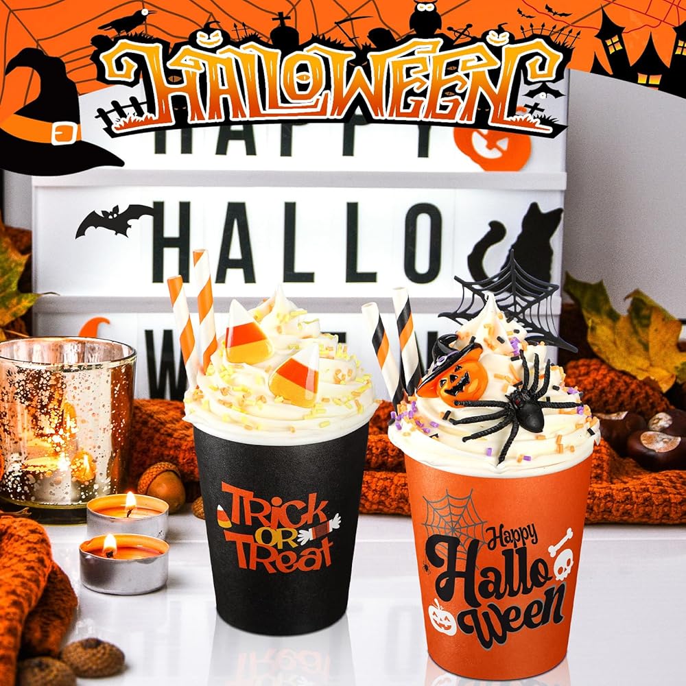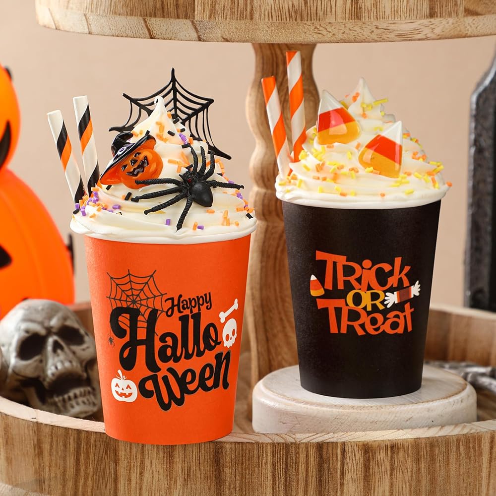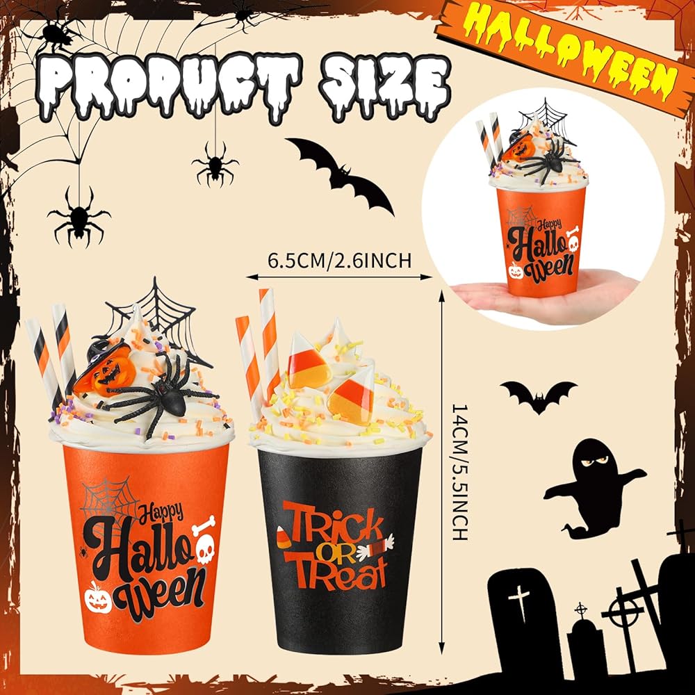 • أغطية كريمية مخفوقة صناعية: تأتي هذه الديكورات الجذابة للأكواب مع أغطية كريمية مخفوقة صناعية تضيف سحرًا وأصالة فريدة من نوعها؛ هذه العناصر الواقعية تجعل هذه الأكواب إضافة رائعة لمجموعة ديكورات الخريف الخاصة بك