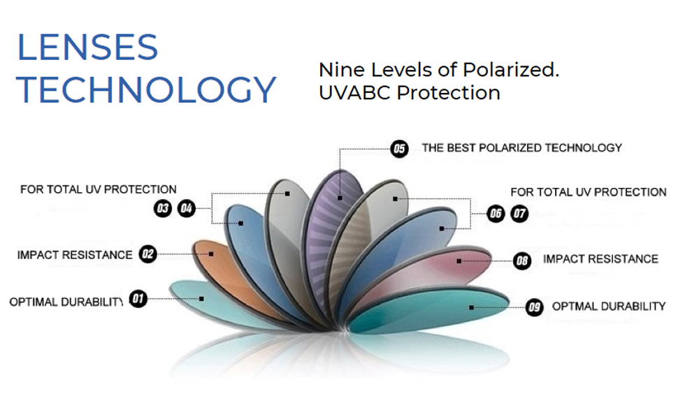 عدسات حماية مستقطبة بنسبة 100% من الأشعة فوق البنفسجية فئة A.