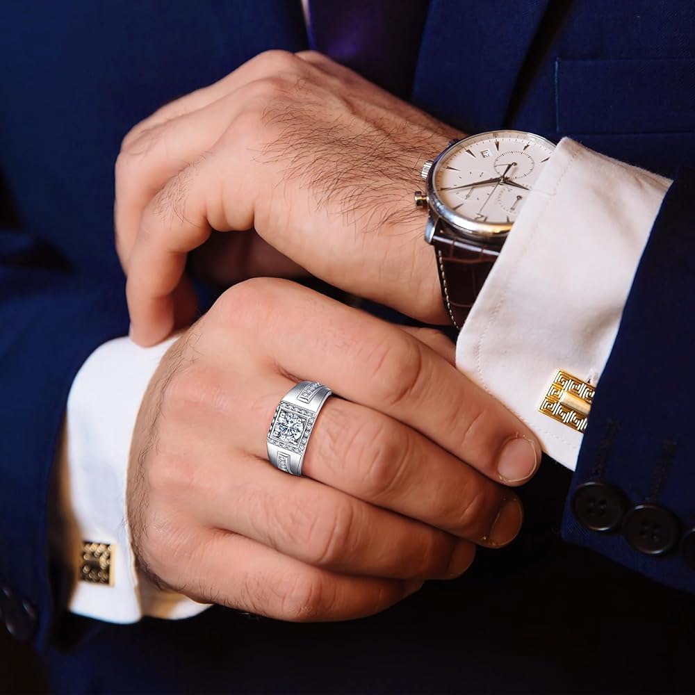 • أناقة لا تتأثر بمرور الزمن: مصنوعة من الفضة الإسترلينية عيار 925 عالية الجودة، هذه الخواتم المويسانتي للرجال تضفي أناقة لا تتأثر بمرور الزمن. تصميمه الكلاسيكي مثالي لحفلات الزفاف واحتفالات الذكرى السنوية، مما يضمن لك ترك انطباع دائم.