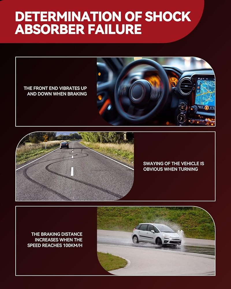 Any component has a life expectancy of the shock absorber is no exception, according to the experiment, the car every driving 1 km, the shock absorber will produce about 1100 times vibration, when your car driving 20,000 kilometers, please check your shock absorber; driving 80,000 kilometers need to replace the shock absorber; in order to you and your family's safety, 100,000 kilometers and above, please replace it.