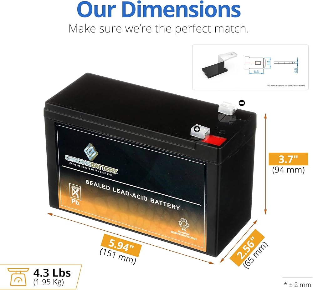 Chrome Battery presents 12V7AH sealed AGM batteries, the precision power solution. Each battery is constructed with lead calcium alloy and absorbed glass mat technology that allows for a complete maintenance-free and high-performance operation. Chrome Battery features improvements in the longevity, warranty, returns, and shipping over our other brands; Pirate and Zipp. All 12V7AH Chrome Battery brand AGM batteries are manufactured with the highest quality materials and rigorously tested to ensure safety, OEM compatibility, effectiveness, and optimal performance. 12V7AH is a 12V CCA High Performance Sealed AGM Battery. 12V7AH has AGM Separators for superior design and durability. 12V7AH Battery Features: No spills, no leaks, and no water to check. Extreme vibration resistance to ensure maximum conductivity. High Cranking Amps & Low Self-Discharge Rate. Fully charged, ready for immediate use. Fits in a variety of applications, ranging from motorcycles, ATVs, UTVs, jet skis, snowmobiles, scooters and more.12V7AH AGM Battery Specifications: Model: 12V7AH Dimensions: (H) 3.72" x (L) 5.94" (W) 2.56" Weight: 5.6 lbs.Volts: 12V Polarity: [+ -]Condition: New. Also Replaces: RBC2, RBC17, RBC51, RBC59, 12-621, BP7-12, BP7-12-T2, BP7.5-12, BP8-12, CFM12V6.5, CP685AVR, DG12-7, ES7-12, EVX127, EVX127F2, GP127, GP127F2, GP1272, GPL1272F2, GT26P4, HE12V7.7, HR9-12, HR1224WF2, J126, J1265, LC-R127R2P, LCR12V6.5BP, LCR12V7.2P.