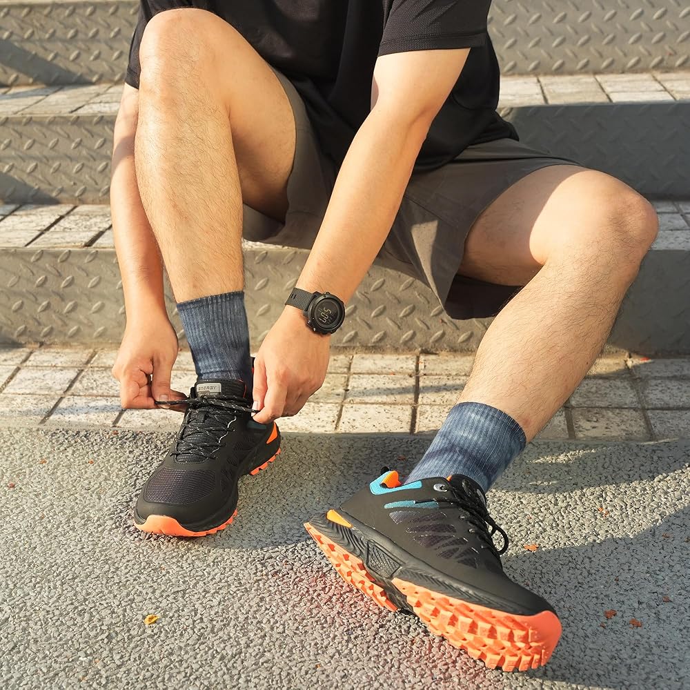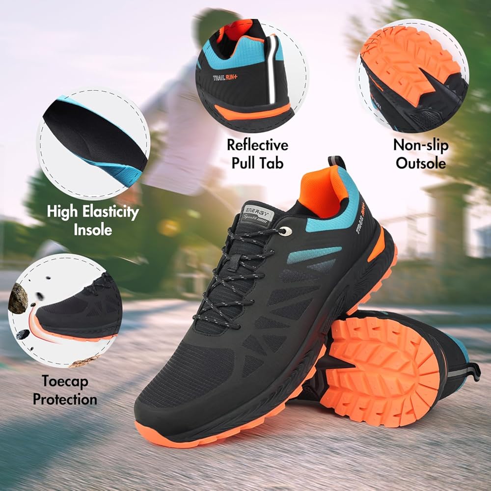 - الجزء العلوي المقاوم للماء وغطاء أصابع القدم المضاد للتصادمات يحمي أصابع قدميك ويعزز السلامة في الهواء الطلق.