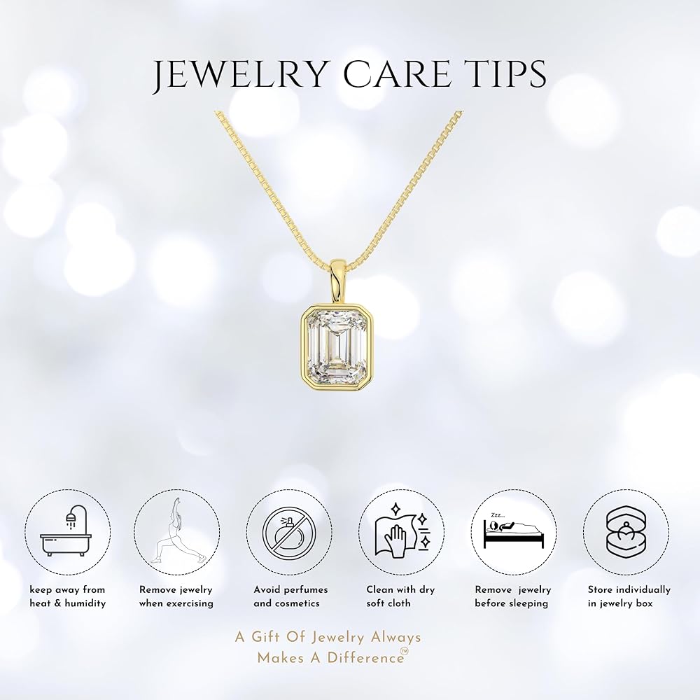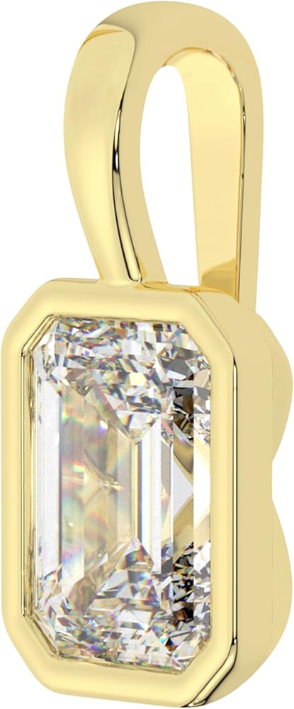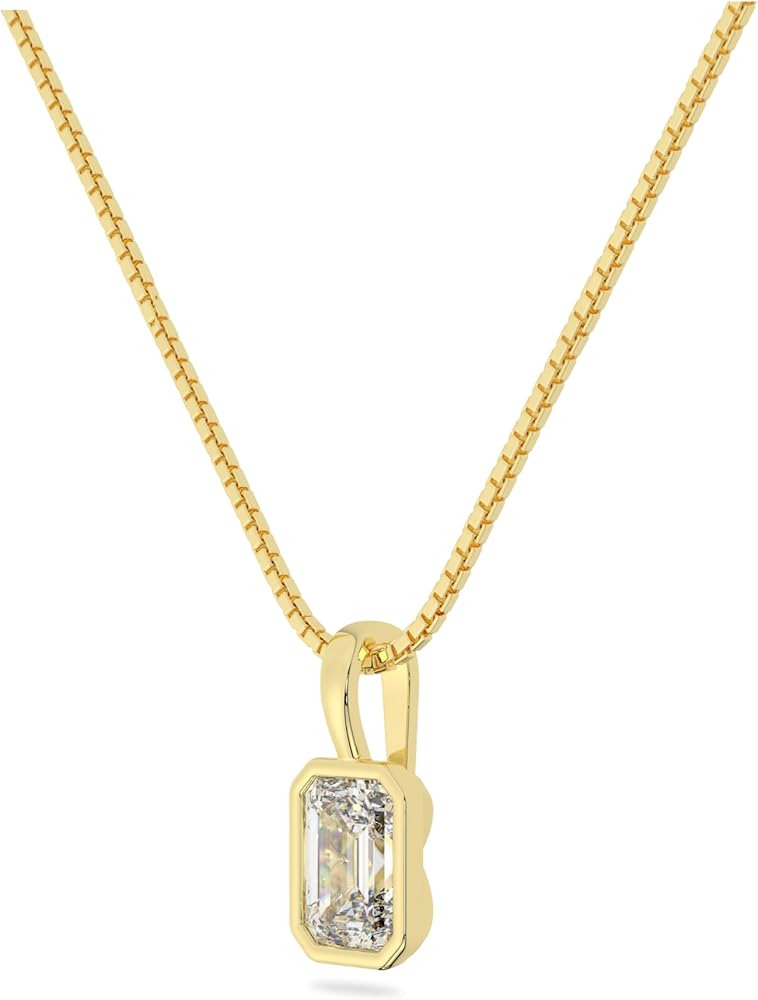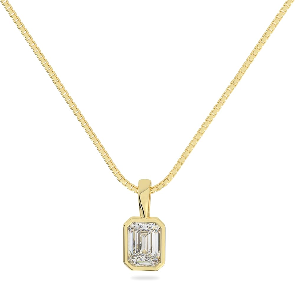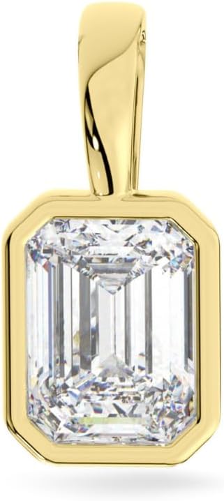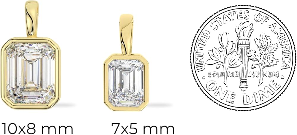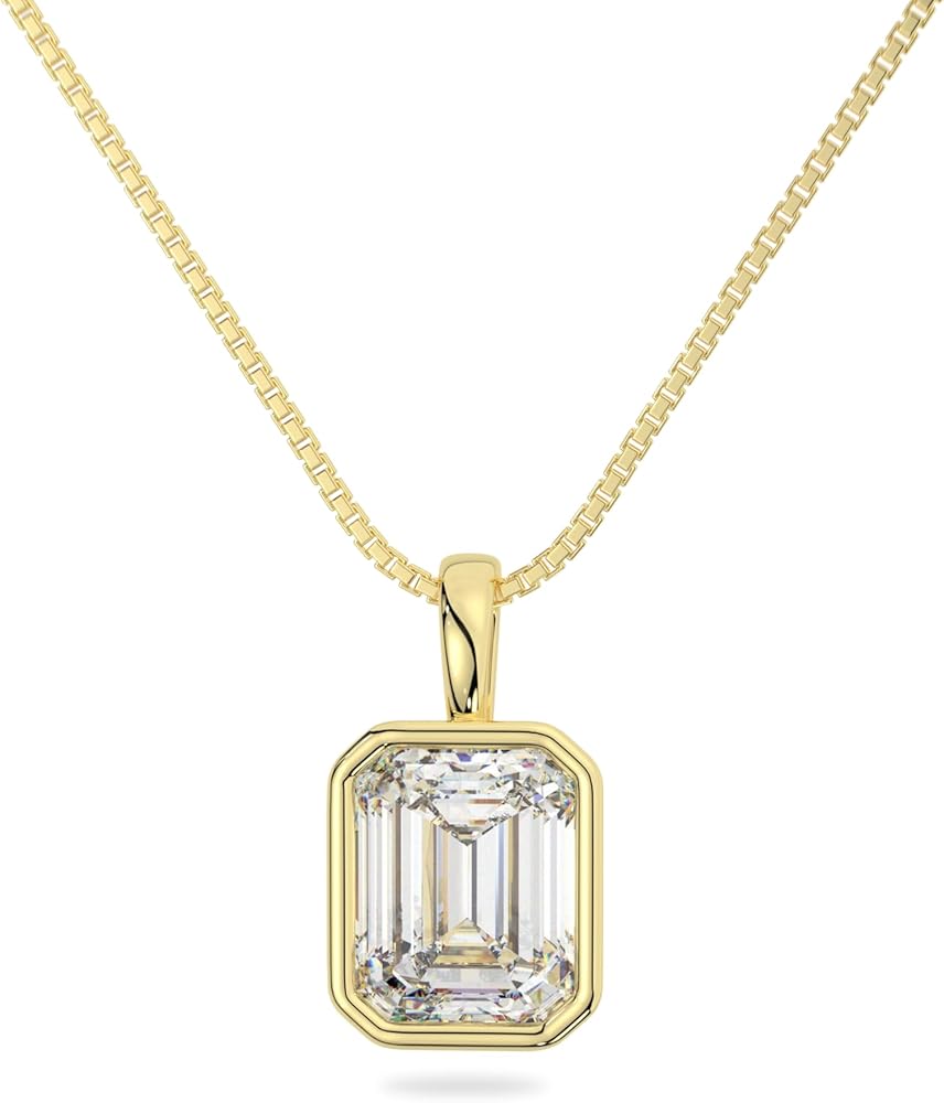 💎ABOUT THE JEWELRY: Experience pure elegance with our Emerald Cut Moissanite Pendant set in a Solid White Gold bezel setting. Its elongated rectangular shape and step-cut design create a mesmerizing "hall of mirrors" effect that enhances light reflection. The 10x8 mm stone showcases a Diamond Equivalent Weight (DEW) of 4.0 carats and is meticulously crafted for optimal brilliance, boasting VVS1 clarity and Colorless D color.