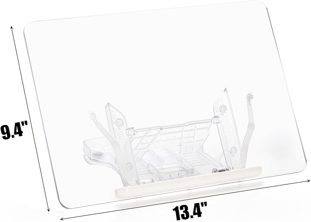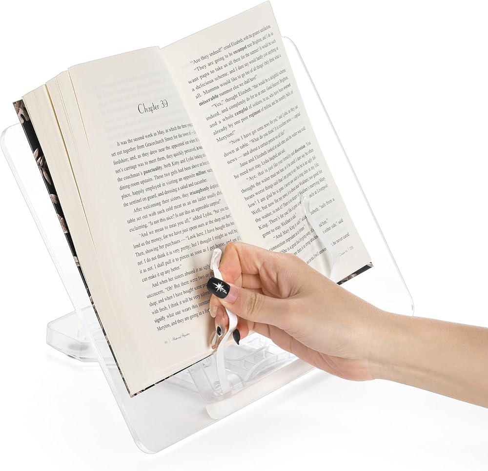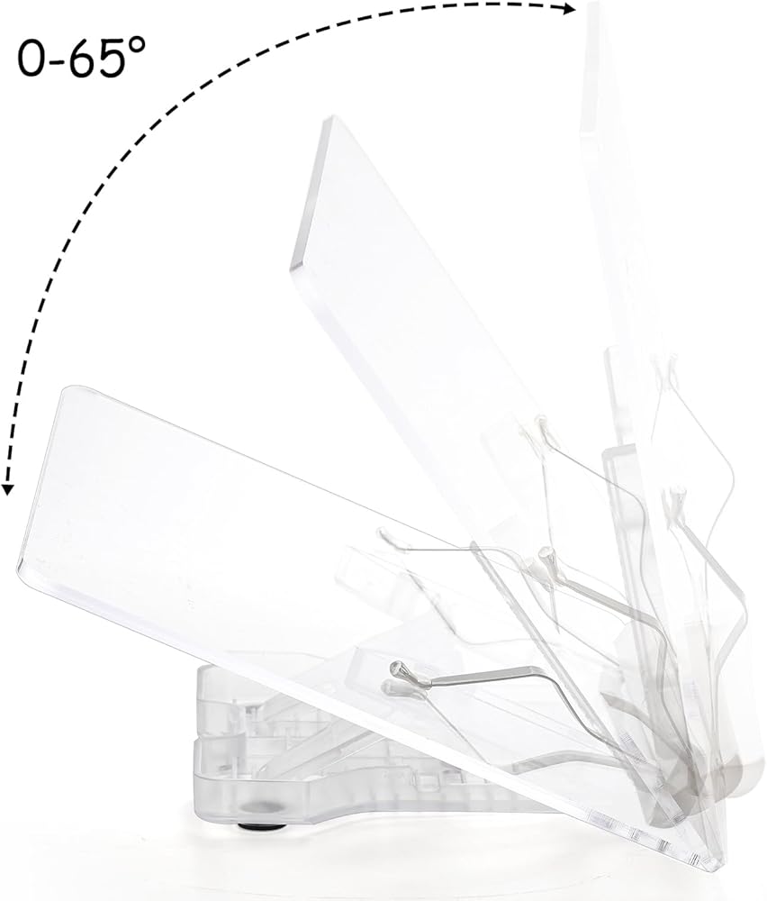 حامل كتب أكريليك من Peohud للقراءة، حامل كتب الطبخ بزاوية قابلة للتعديل، حامل كتب وصفات قابل للطي بدون استخدام اليدين مع مقاطع صفحة للكتب المدرسية والمجلات والكمبيوتر اللوحي والكمبيوتر المحمول