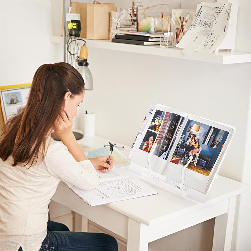 • تعديل متعدد الزوايا: يحتوي حامل الكتب الأكريليك Peohud على 13 زاوية قابلة للتعديل تتراوح من 0 درجة إلى 65 درجة. نطاق تعديل الارتفاع من 1 إلى 9 بوصة. يمكنك وضع الكتاب بزاوية القراءة الصحيحة لحماية صحة العمود الفقري العنقي.