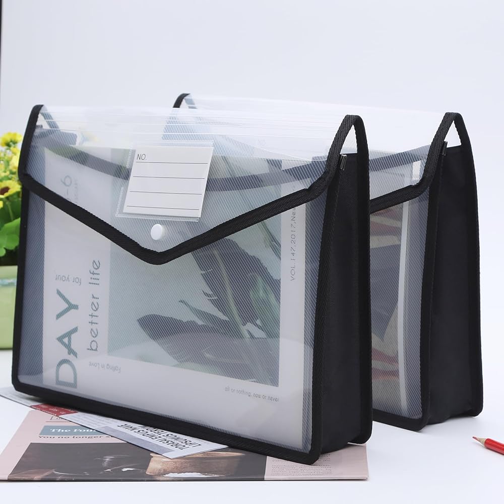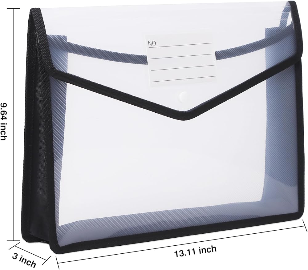 سهولة التنظيم والرؤية: تتميز الحافظة بفتحة للبطاقات، مما يجعل من السهل تصنيف وتحديد المستندات المهمة. التصميم السفلي الواسع يسمح لها بالوقوف بمفردها على الرف الخاص بك، مما يحافظ على كل شيء منظمًا ومرئيًا.