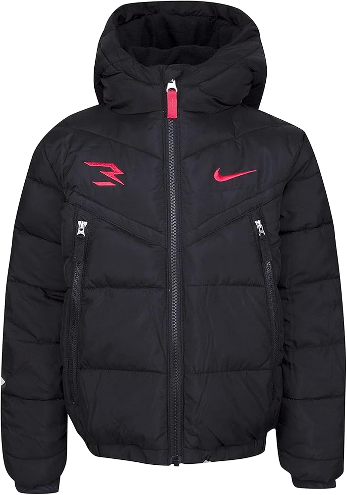 Russell Wilson's 3BRAND brings sport, music and fashion together in an on-trend sportswear brand that inspires us to be better, do more, and give back. 3BRAND believes the mind, body and soul combine to make dreams come true. A percentage of all 3BRAND sales are donated to the Why Not You Foundation, Russell and Ciara's nonprofit organization dedicated to fighting poverty through education, empowering youth to lead with a why not you attitude. RW3 Stadium Puffer (Little Kids). Full-zip. Hood. Water resistant. Quilting. 2 zipped front pockets. Elastic cuffs. 3BRAND x Nike logos at chest. 100% polyester. Machine wash.