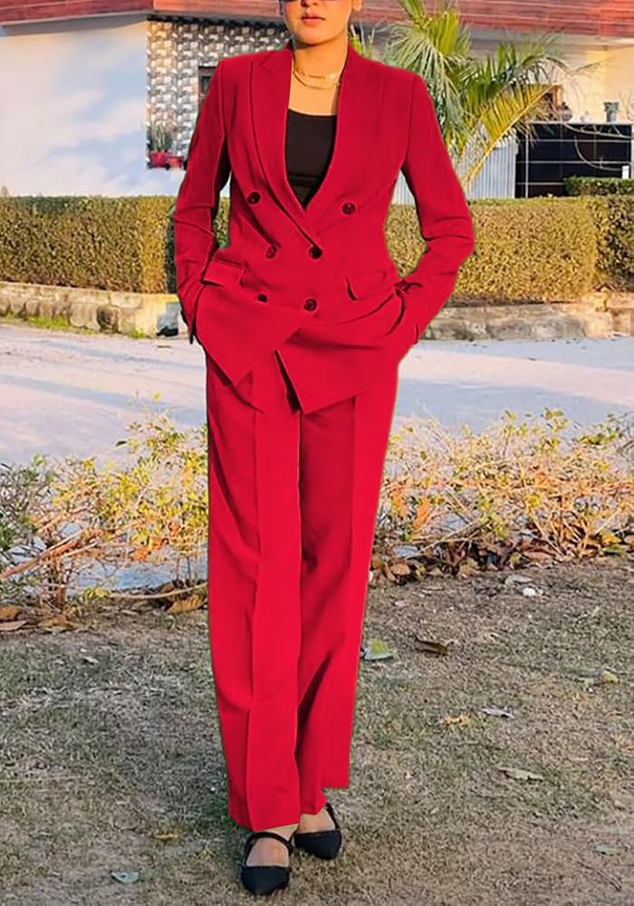 النمط: مجموعة سراويل بليزر نسائية مكونة من قطعتين، نمط كاجوال وعصري، أكمام طويلة مع زر مزدوج الصدر تجعل بدلة العمل النسائية هذه رسمية ولكن خاصة، بدلة عمل مكتبية أنيقة للعمل، ملابس نسائية مكونة من قطعتين بدلات بناطيل بليزر، مجموعة بدلات مكتب للسيدات ، طقم بدلة عمل أنيق