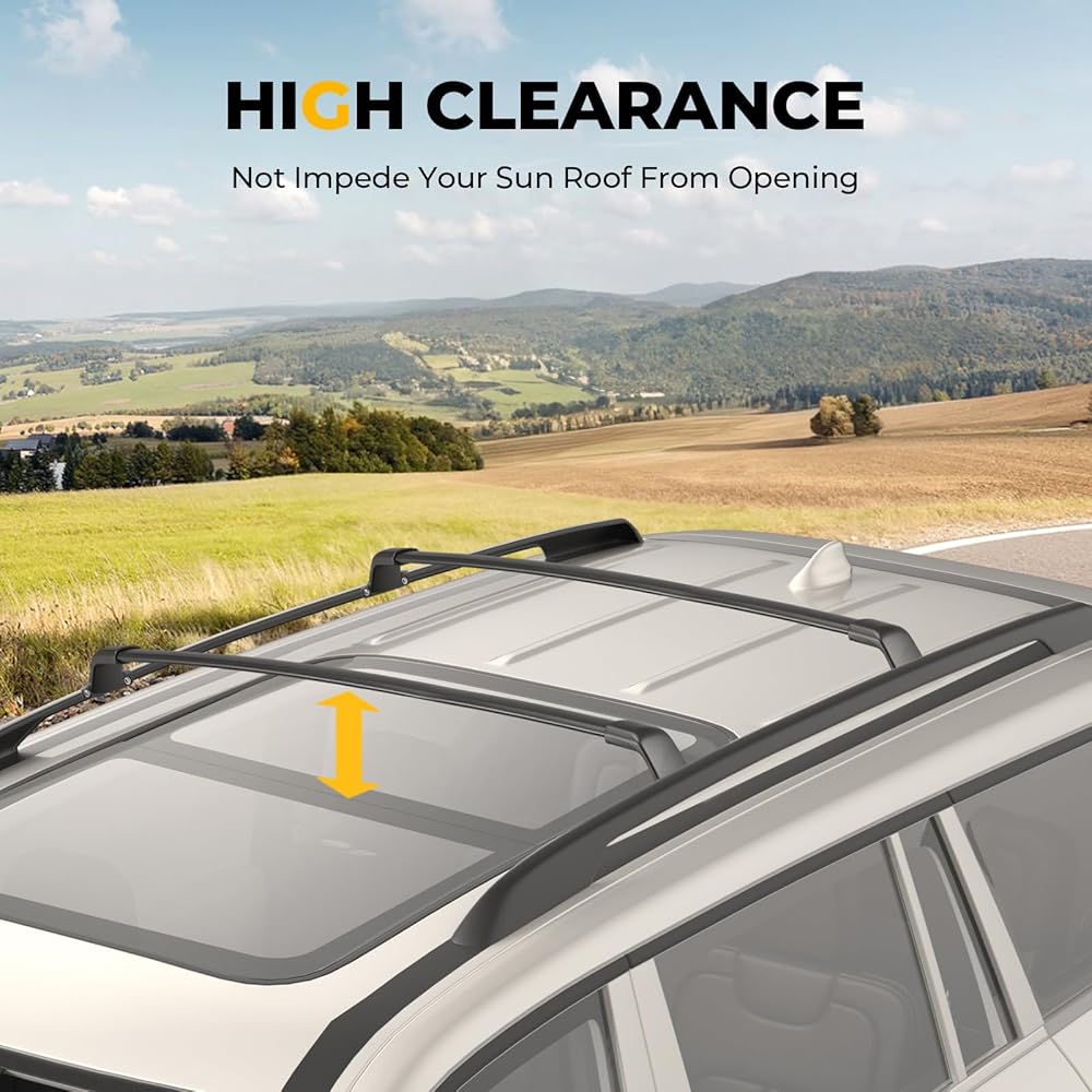 【شفافية عالية】لن تتداخل قضبان BougeRV المتقاطعة مع فتحة السقف وهي مناسبة للملحقات الصغيرة مثل حقائب السقف أو العناصر الأكبر مثل قوارب الكاياك.