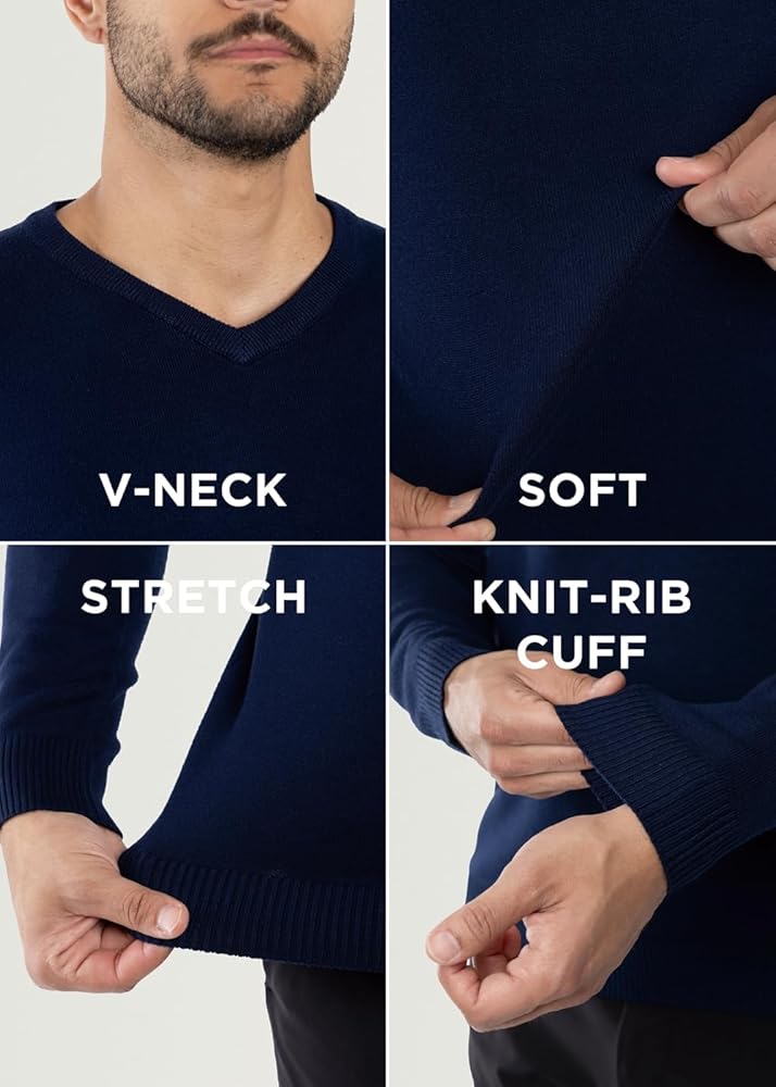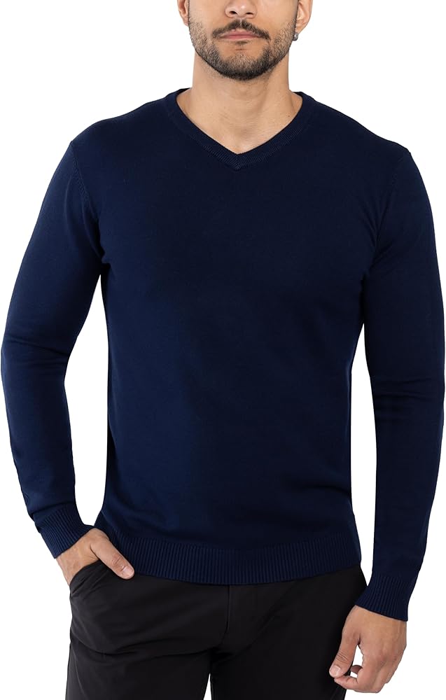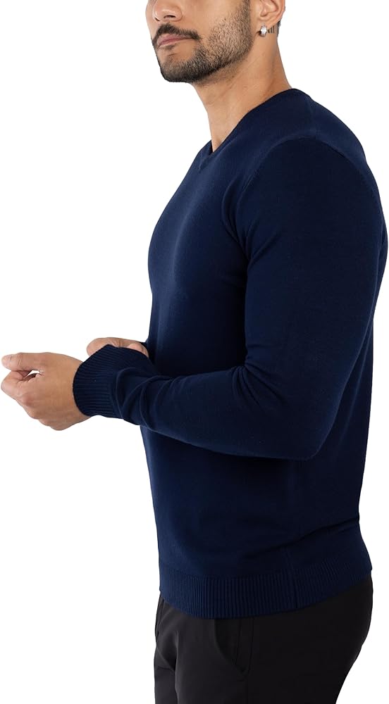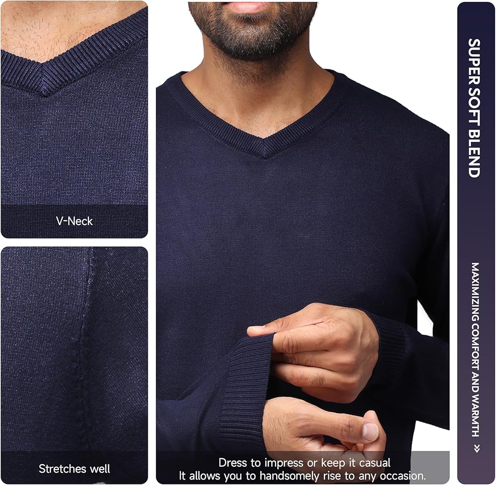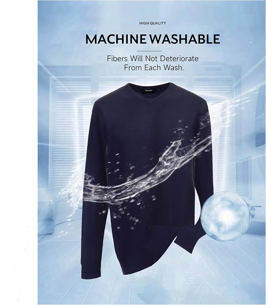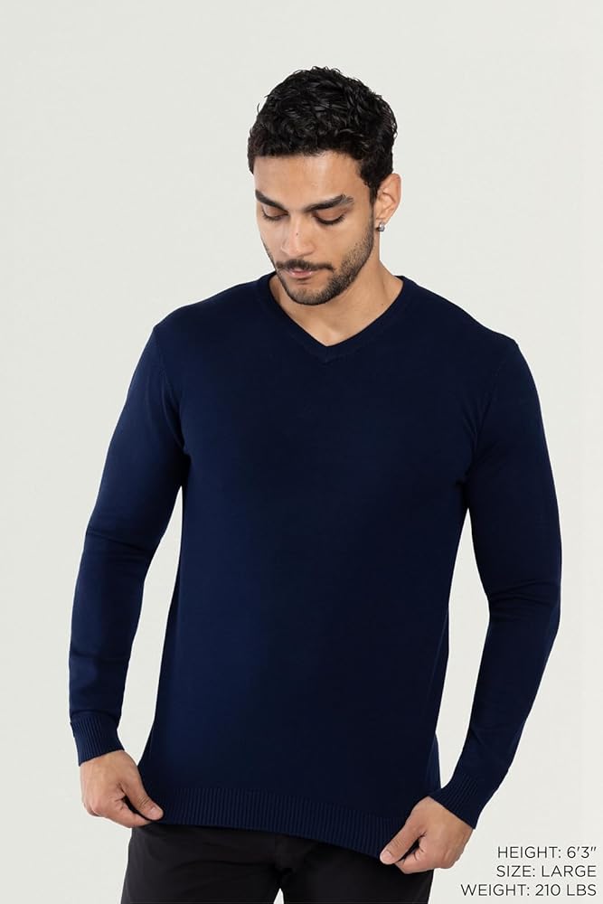 QUALITY: Our Men's Long Sleeve Sweater are Constructed Of Highly Durable Materials So You Can Work Or Play Hard And Quality Will Stay As Good As New. Ultra Soft, Machine Washable, It's Fibers Will Not Deteriorate. Classically styled with ribbed collar, cuffs and waistband, this contemporary men's v neck sweater gives you a pulled-together look with modern edginess from the taper length that falls just below the waistline.