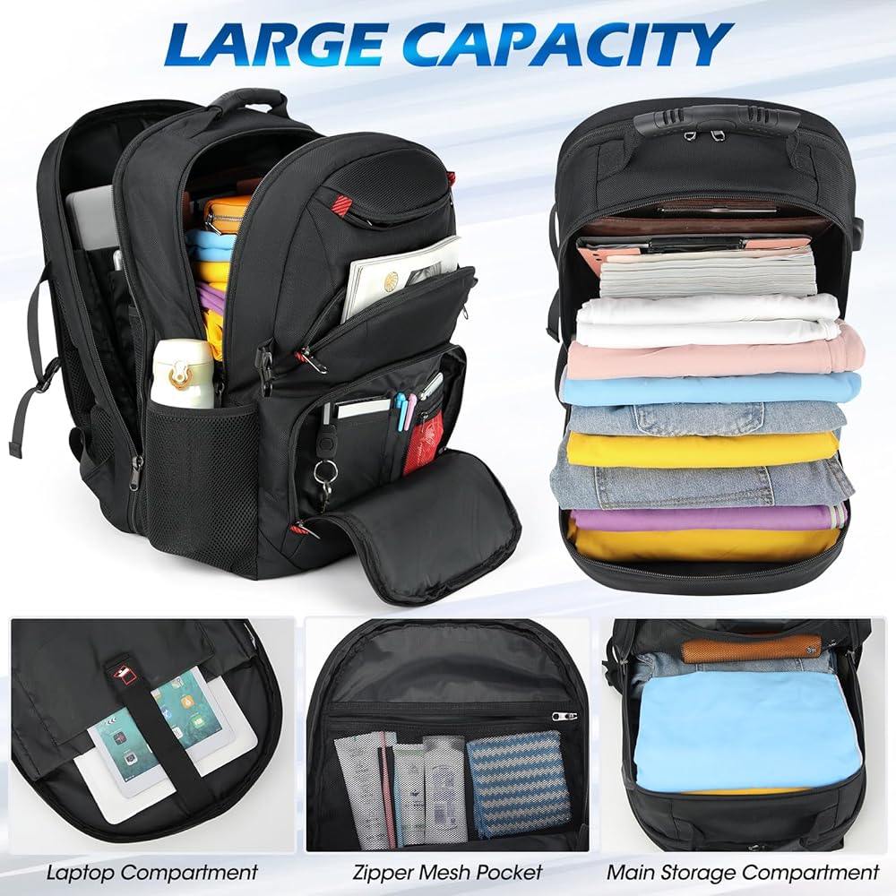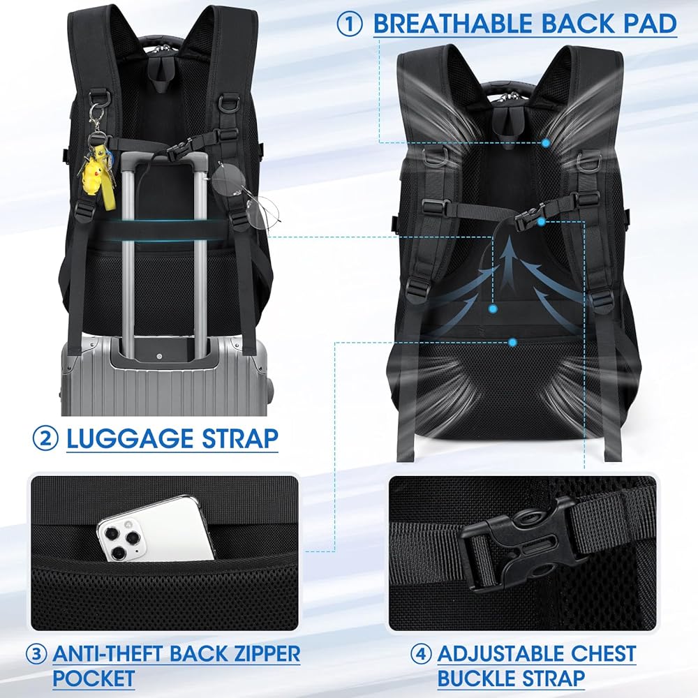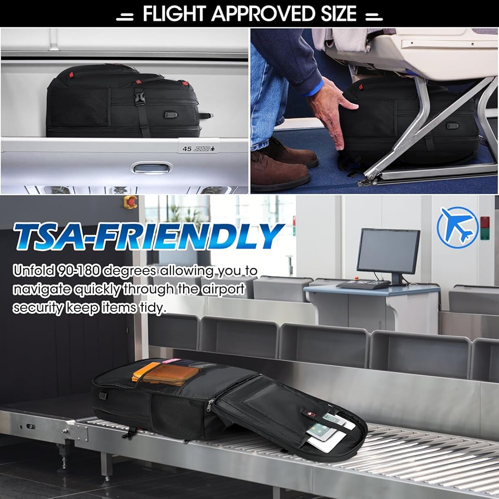 【مثالية للسفر】قم بتبسيط تجربة المطار الخاصة بك مع حقيبة الظهر التي تفتح 90-180 درجة لإجراء فحوصات أمنية سريعة. قم بربطها بمقبض حقيبتك باستخدام حزام الأمتعة لتحرير يديك وتخفيف حمولتك. بفضل المقبض القوي والتصميم الأنيق، فهو مثالي للسفر الدولي والمغامرات اليومية.