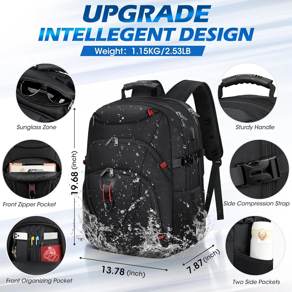 【حماية فائقة للكمبيوتر المحمول】حافظ على أمان أجهزتك مع مساحات مبطنة مخصصة لأجهزة الكمبيوتر المحمولة التي يصل حجمها إلى 17.3 بوصة. تضمن حقيبة الظهر للكمبيوتر المحمول للرجال بقاء الكمبيوتر المحمول والكمبيوتر اللوحي الخاص بك آمنًا مع توفير مساحة واسعة في الحجرة الرئيسية للملابس والكتب والضروريات اليومية. بالإضافة إلى ذلك، فإن الجيب الشبكي يحافظ على أدوات النظافة الخاصة بك منفصلة، مما يجعل عملية التعبئة أمرًا سهلاً.