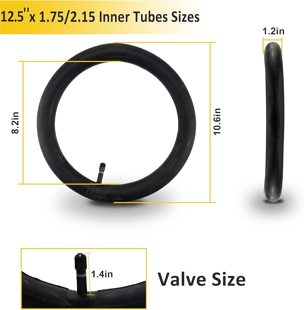 أنابيب عالية الجودة، الأنابيب الداخلية البديلة مقاس 12.5 بوصة × 1.75/2.15 و16 بوصة × 1.5-1.75 مصنوعة من مادة مطاطية شديدة التحمل مقاس 3.5 مم والتي ستغلق بالداخل وتحتفظ بالهواء لفترات أطول (مقارنة بالأنبوب الداخلي الرقيق) التي تتطلب التضخم أقل تواترا.
