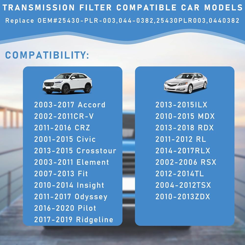 【Wide Application】: This transmission filter is suitable for automatic transmissions. It can be used to replace filters with OEM numbers 25430PLR003 and 0440382. It is also compatible with Accord, CR-V, CR-Z, Civic, ILX, MDX, RDX, RL, RLX, RSX and other vehicles.