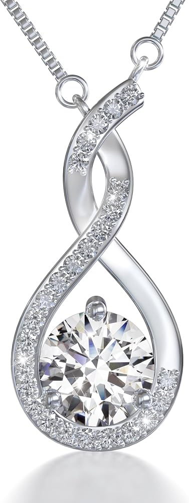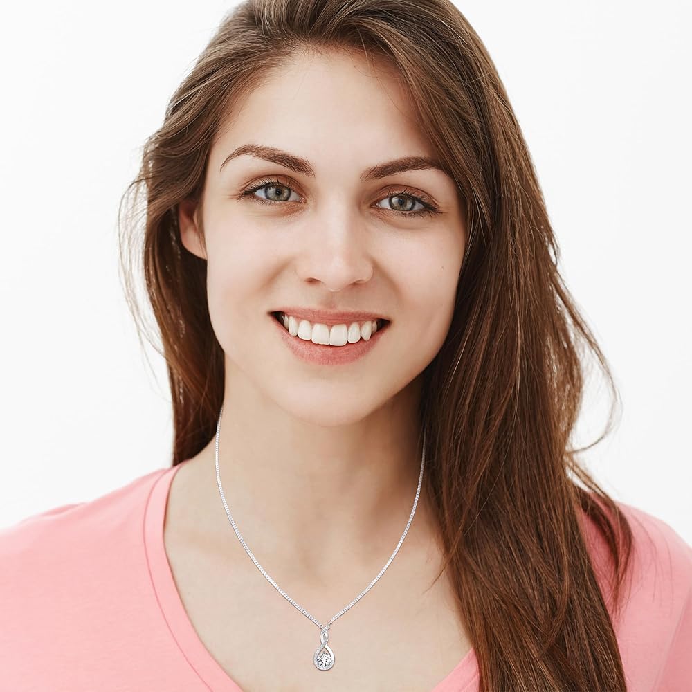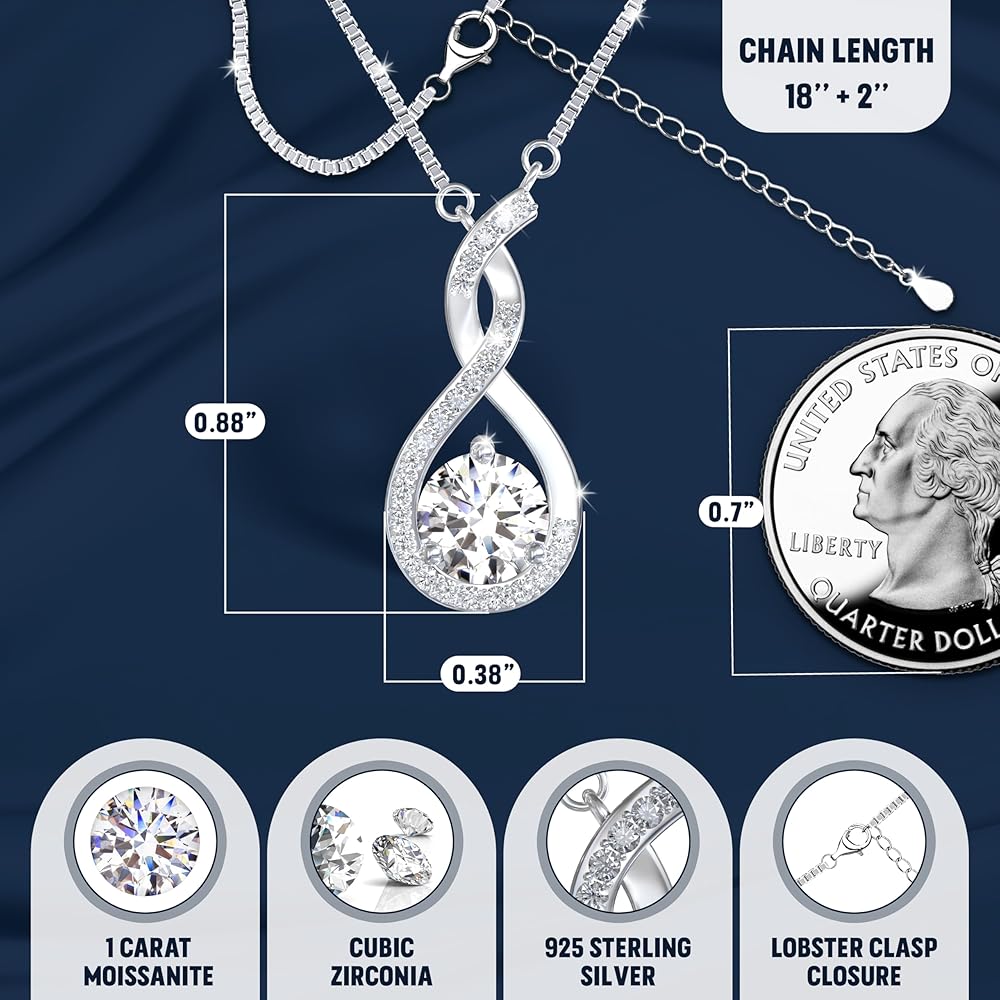 الفضة الصلبة مع طلاء البلاتين: لقد قمنا بطلاء هذه القلادة النسائية من الفضة الإسترلينية عيار 925 الصلبة مع قلادة لا نهاية لها لضمان أقصى قدر من المتانة مع إضافة لمعان لامع؛ قلادة الألماس الفضية الفاخرة والغنية للنساء تجعلها مثالية كقلادة خطوبة لصديقتك، أو هدية عيد ميلاد للمرأة للأم، أو هدية الذكرى السنوية للزوجة، أو قلادة لزوجتي المستقبلية مع ألماس المويسانتي