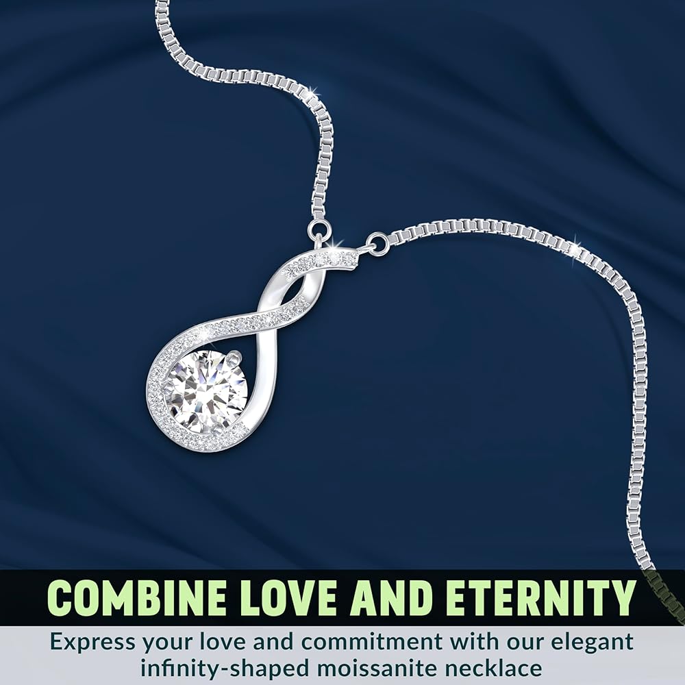 هدية Love Infinity لها: قلادة الماس الصناعي العصرية إلى الأبد للنساء تمثل أفضل هدية للتعبير عن حبك والاحتفال به؛ لا يقتصر الأمر على الارتقاء بالأناقة فحسب، بل إنها ذات مغزى ورمزية، فهدية مجوهرات المويسانتي للنساء هي إضافة فاخرة إلى لعبة القلادة الخاصة بها بينما تكون جوهرة عزيزة تقول بصوت عالٍ "أنا أحبك"