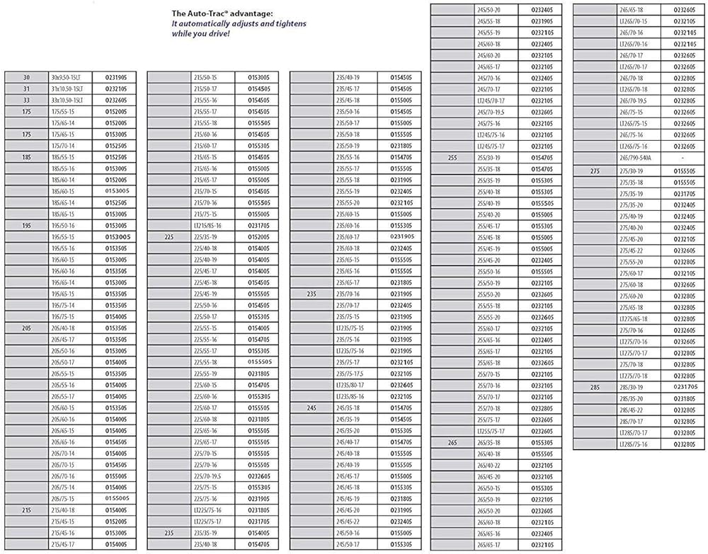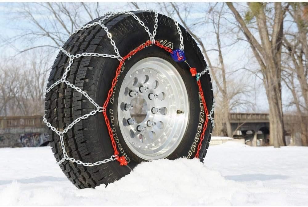 سلسلة إطارات 155505 من Auto-Trac 1500 شاحنة بيك اب/سيارات الدفع الرباعي سلاسل إطارات الثلج مع نمط متقاطع ماسي للقبضة والنعومة، 4 عبوات