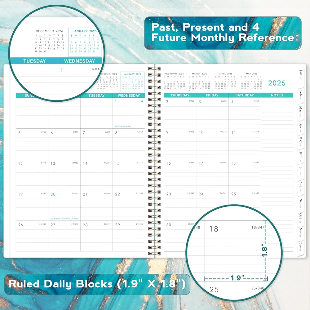 نظرة عامة شهرية - يغطي كل شهر من هذا المخطط الشهري لعام 2025 صفحتين كاملتين وهو أمر رائع للتخطيط على المدى الطويل. كما أن المكعبات اليومية المسطرة مقاس 1.9 × 1.8 بوصة للجدولة المفتوحة وتوفر مساحة واسعة لتخطيطك اليومي لكل شهر. الأشهر الستة من التقويمات المرجعية الشهرية السابقة والقادمة وفواصل علامات التبويب طويلة الأمد لتسهيل التخطيط والتتبع على مدار العام.