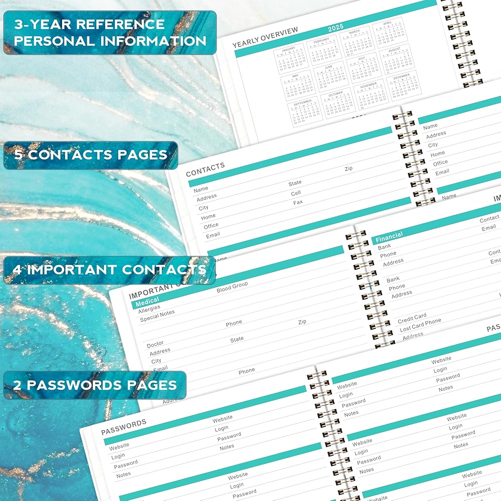 تنظيم مذهل - عطلات مميزة لتذكيرك بكل عطلة مهمة. تقويم عام مدته 3 سنوات للتخطيط طويل المدى. 13 صفحة ملاحظات مسطرة يمكنها تدوين أفكارك وأفكارك واقتباساتك والمزيد. قم بإدارة جهات الاتصال الرئيسية الخاصة بك على صفحات الهاتف/العناوين. جيب داخلي مزدوج الجوانب يمكنه تخزين أغراضك الفضفاضة.
