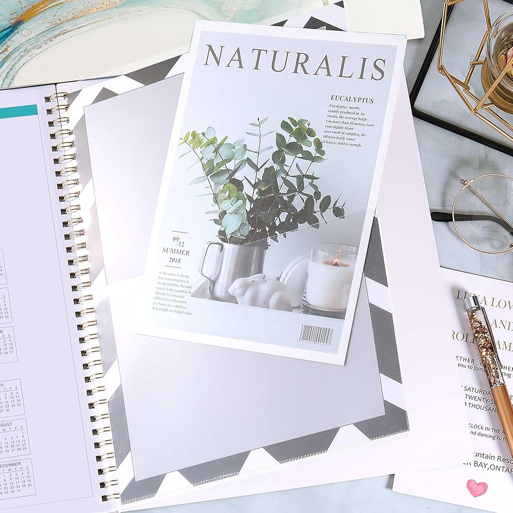 تصميم أنيق - الغطاء المتين والأنيق ذو الملمس الناعم صديق للبيئة. هذا المخطط مثالي للاستخدام في العمل أو المدرسة أو المنزل. يسمح تصميم السلك المزدوج الحديث والمتين والقوي للمخطط بقلب 360 درجة ووضعه بشكل مسطح من أجل الكتابة الفعالة.