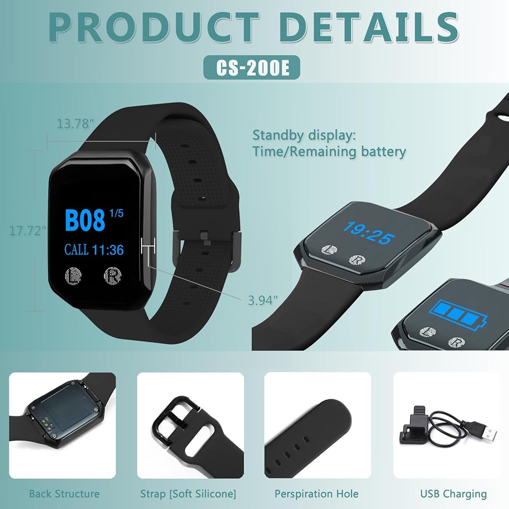 الإعداد السهل: لقد قمنا بمطابقة الساعة والزر لك عند الشحن، ويمكنك استخدامه مباشرة بعد استلام نظام النداء اللاسلكي. تذكير يهتز فقط، لا نغمات! ليست ساعة ذكية! لا يمكن الاتصال بالهاتف الخليوي