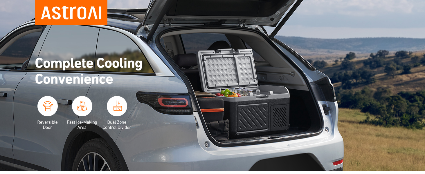 الاستخدام الداخلي والخارجي: يشتمل الفريزر المحمول AstroAI ثنائي المنطقة على قابس ولاعة السجائر ومحولات تيار متردد/تيار مستمر، مما يمنحك المرونة في استخدامه في أي مكان. مثالية للحفلات المنزلية والرحلات.