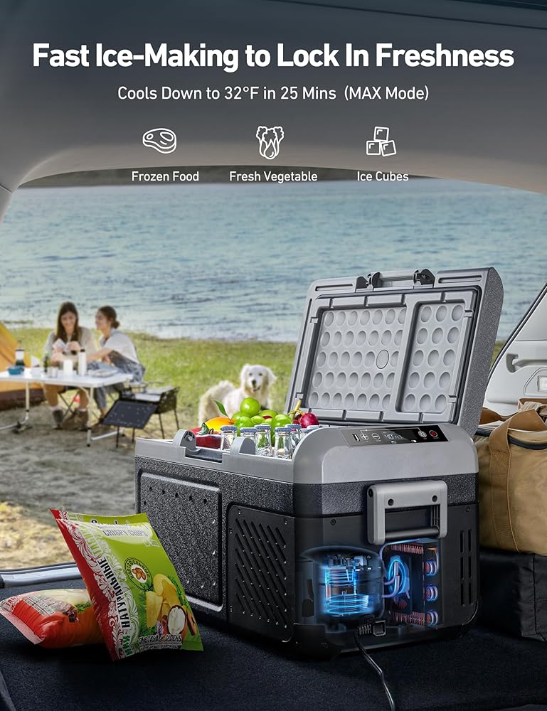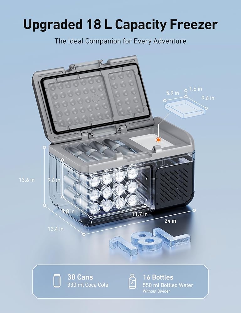 تشغيل خالي من المتاعب: الغطاء القابل للفصل يجعل تخزين الطعام والوصول إليه سهلاً. يمكنك ضبط اتجاه الفتح بناءً على موضع المنطقة المزدوجة للثلاجة 12 فولت. تعمل منطقة التبريد السريع المميزة وصينية مكعبات الثلج المصنوعة من السيليكون على إنتاج مكعبات الثلج بسرعة وسهولة، حتى تتمكن من الاستمتاع بالأطعمة المنعشة أينما كنت، حتى في الهواء الطلق.