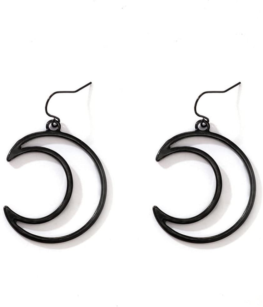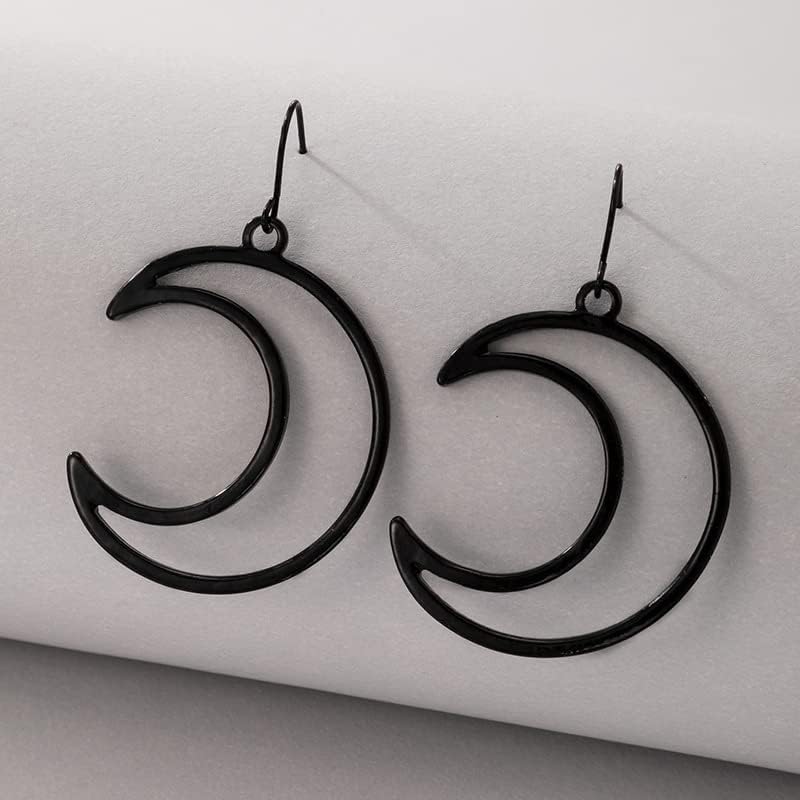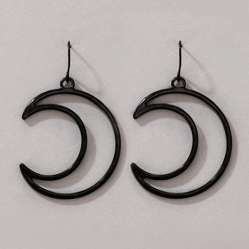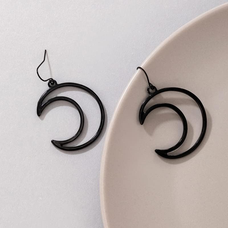 Vintage Moon Drop Dangle Earrings Half Moon Carving Planet Earrings Black Cresent Moon Pendant Earrings Gift