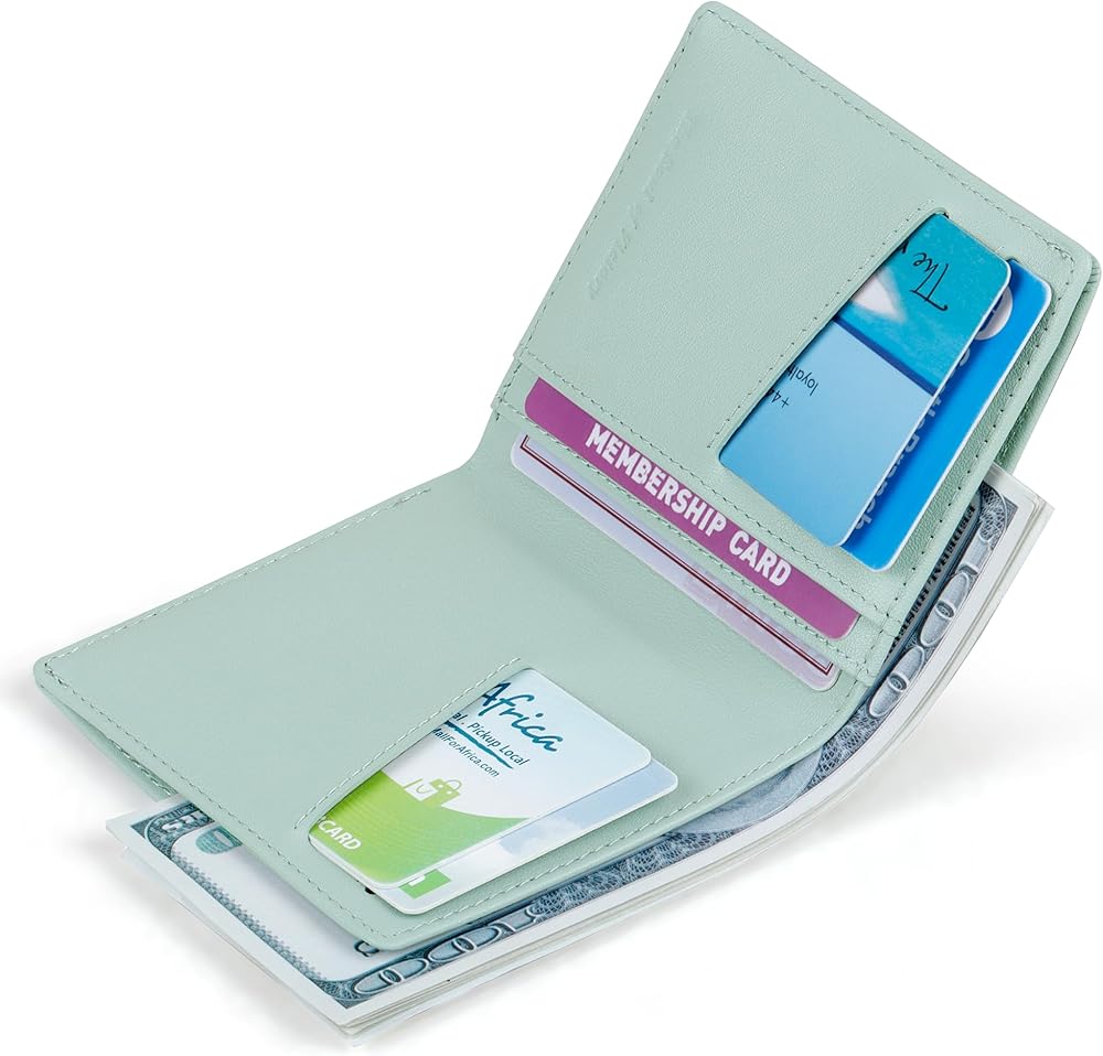 • SLIM SIZE DESIGN- Item length and width: 3.9''x3.5''. Minimalist wallet for your pocket, not too bulky. You could put it in your pocket or bag.