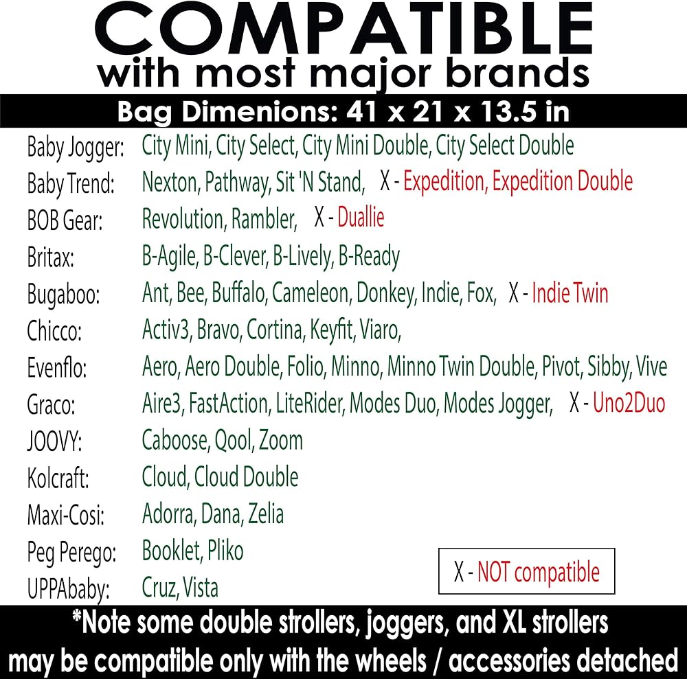 • COMPATIBLE: Fits most standard or double strollers 41 x 21 x 13.5 inches