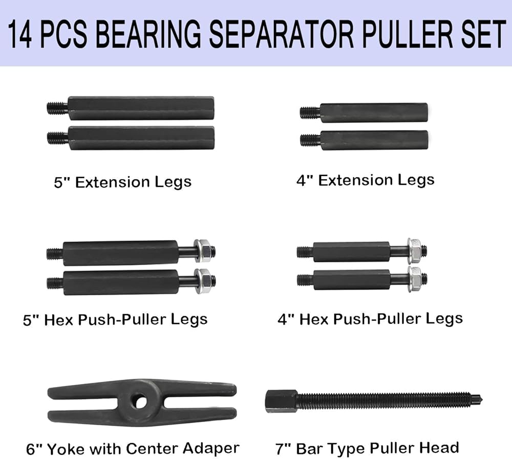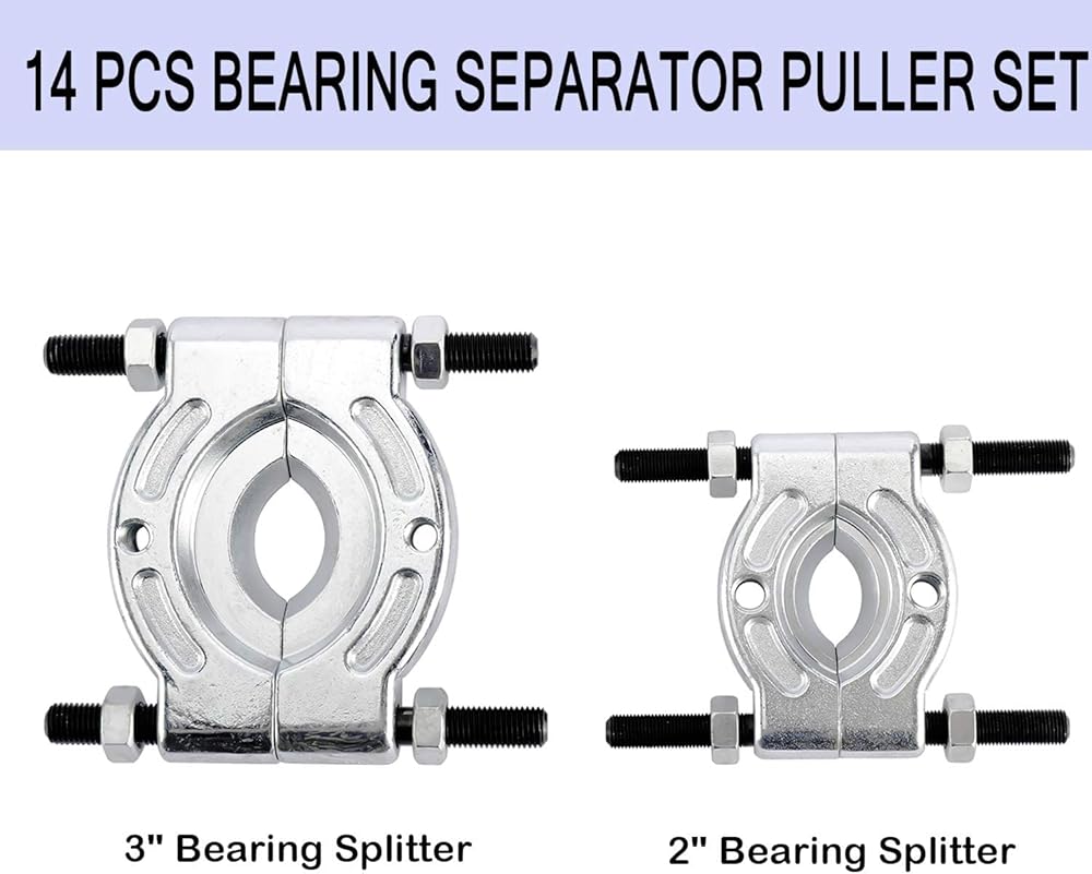 مجموعة أدوات سحب فاصل المحمل 14 قطعة، فواصل تحمل سعة 5 طن، مجموعة إزالة فواصل المحامل 2 بوصة و3 بوصة