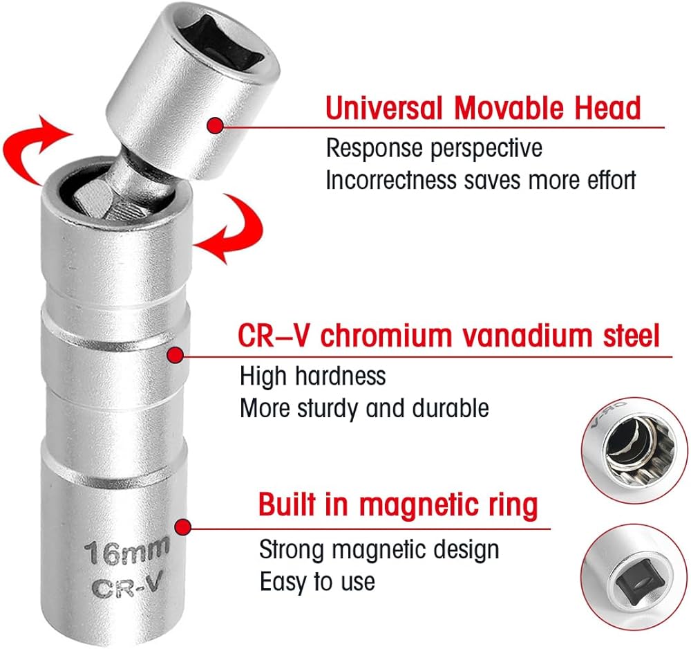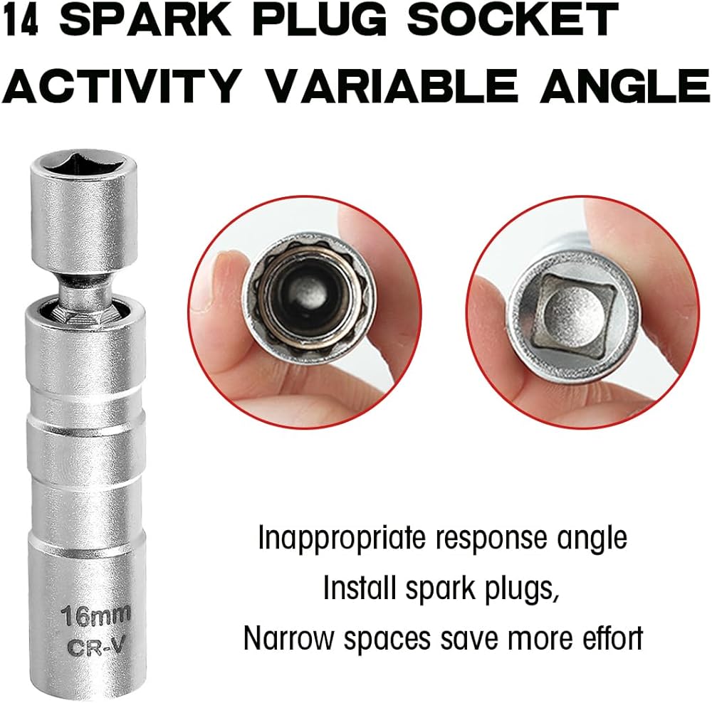 【Practical Function】: This product is an essential tool for removing and installing spark plugs. Unlike ordinary tools on the market, our spark plug socket features a strong magnetic core, 360° rotatable and 12-point design, which can effectively protect the spark plug. It enables you to complete the assembly work easily and efficiently.