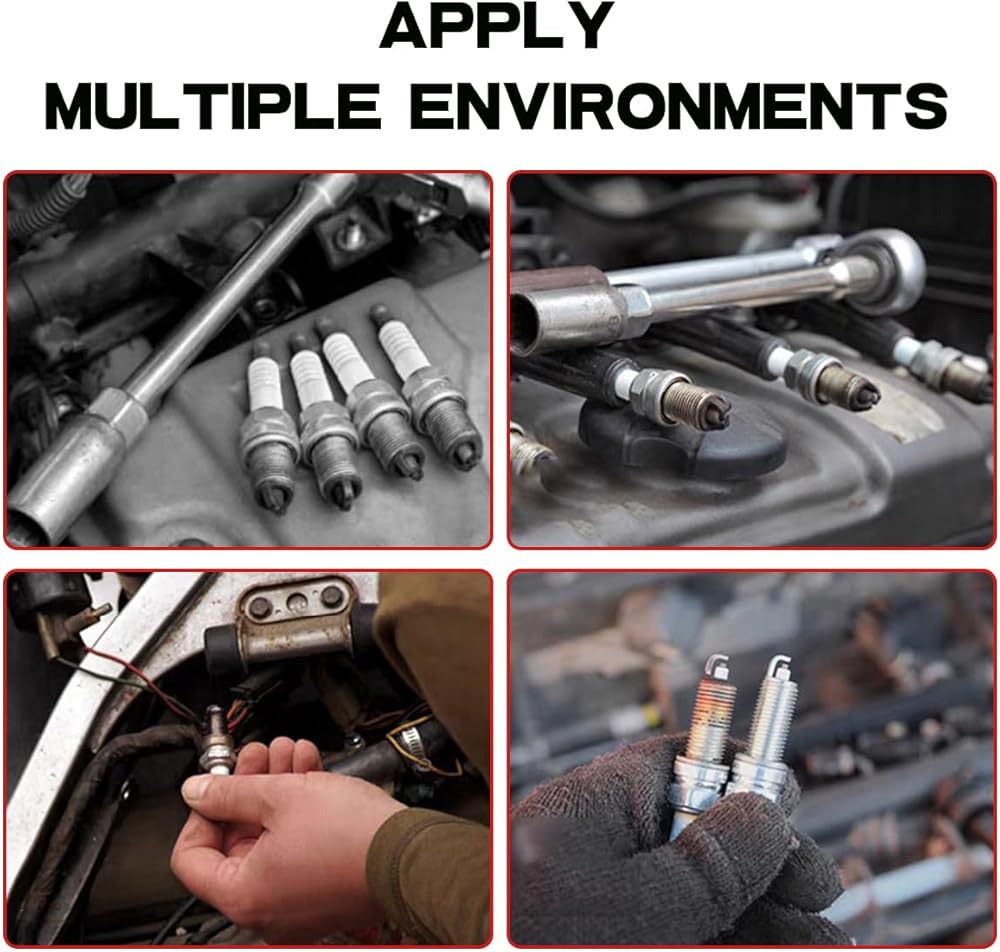 【Wide Application】: The Extended Spark Plug Removal Tool gives you the extra reach needed for tight spots. So it is suitable for most of the vehicles, such as small cars, trucks, SUVs, RVs and other vehicles to repair. Please confirm the size and model number before you buy it, so that it won't be unusable when it arrives.