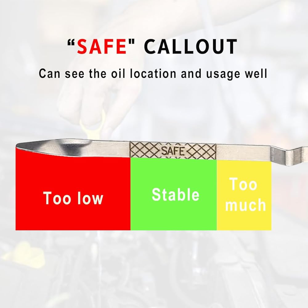 • 【Practical Function】: Maintaining engine oil at the proper safe level ensures a smoother ride and better vehicle performance. It is recommended to check your vehicle's oil level weekly. The engine oil level dipstick is clearly marked with the "SAFE" range, making it easier for you to read the oil level and adjust accordingly. Please make sure the part number of the dipstick matches the original engine oil indicator.
